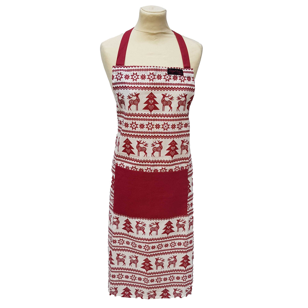 b) Nordic Fairisle pattern of mini reindeer in red/ecru.