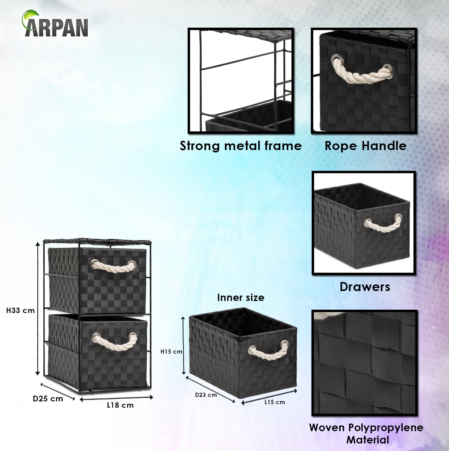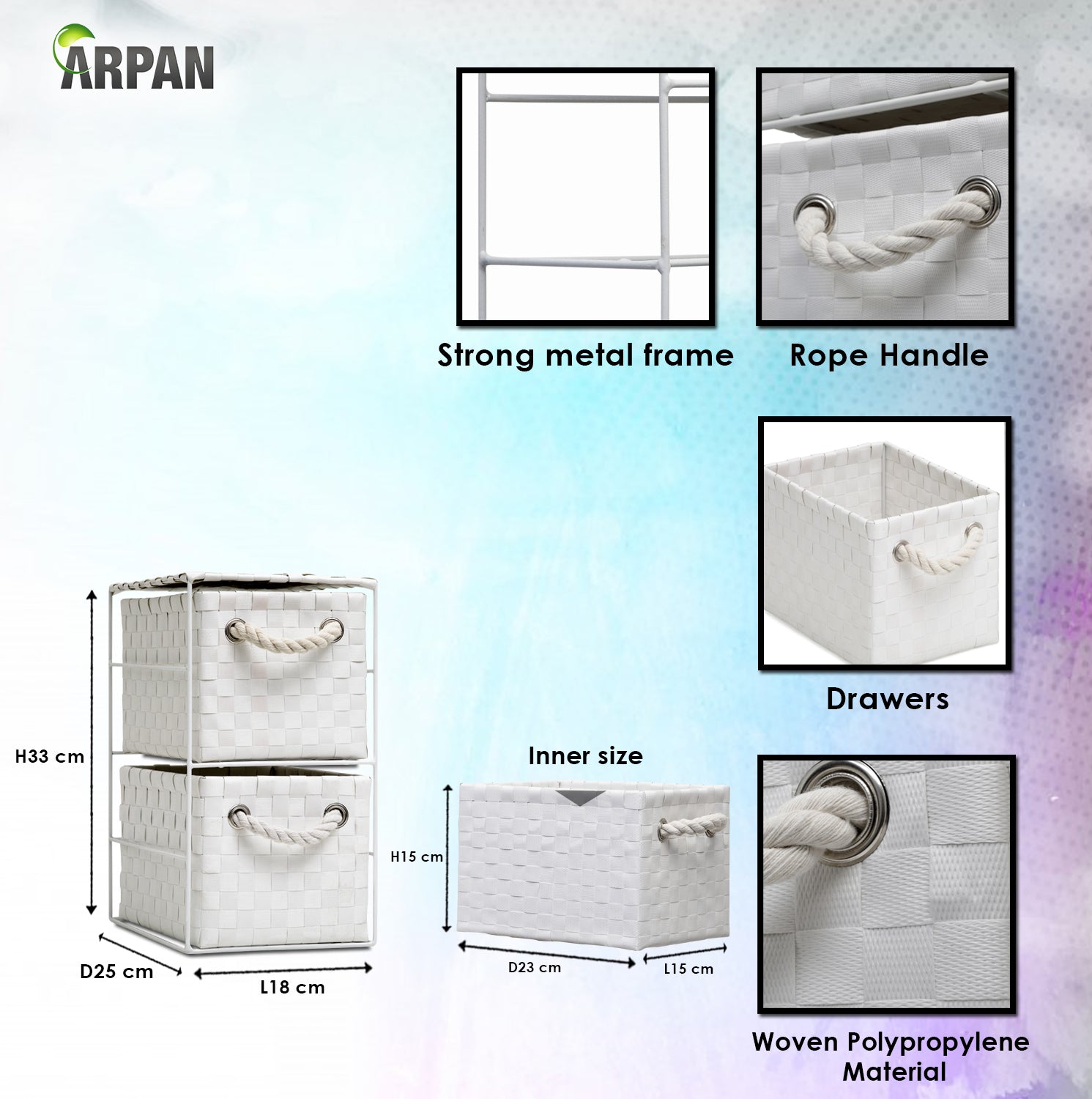 ARPAN MULTI -PURPOSE CABINET PERFECT FOR STORAGE: These firm woven polypropylene drawers are contained in a sturdy and strong metal frame.