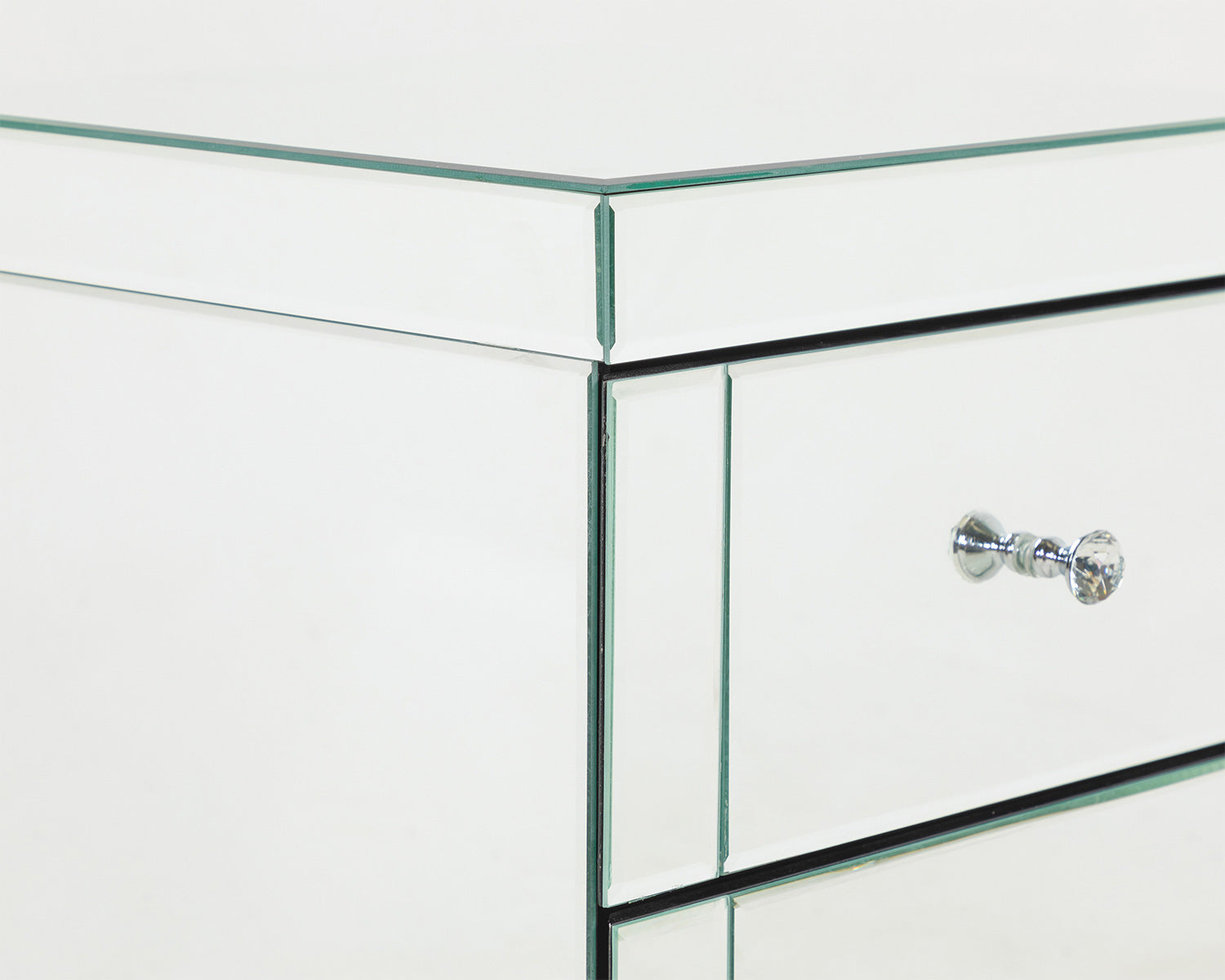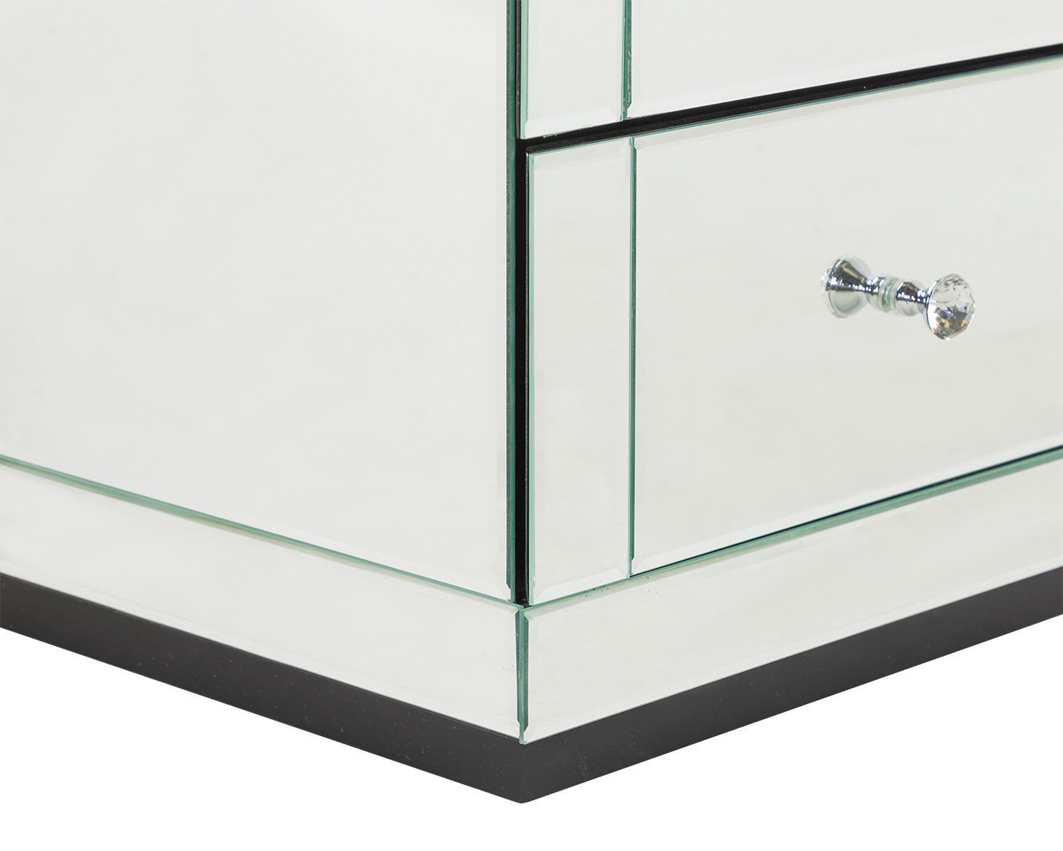 The Monroe range is a classic design with a reflective finish, and one you simply must get your hands on. The mirrored look is a bold statement for your home and looks perfect in the bedroom creating the illusion of space, which is needed, should it be lacking. Crystal glass handles finish off the stylish look of this set, with ample amounts of room allowing you to hideaway any bits and bobs. This mirrored two-drawer set is perfect to store small items within it, as well as a hot coffee on the surface for those lazy Sunday morning lie ins. With two spacious drawers on each unit you’ll have ample amounts of storage space to ensure you can keep your belongings hidden away for a clean finish in your bedroom. The mirrored unit is finished with bevelled edge glass for a classy, ultra-modern look.