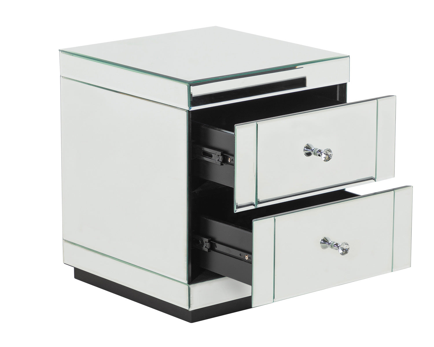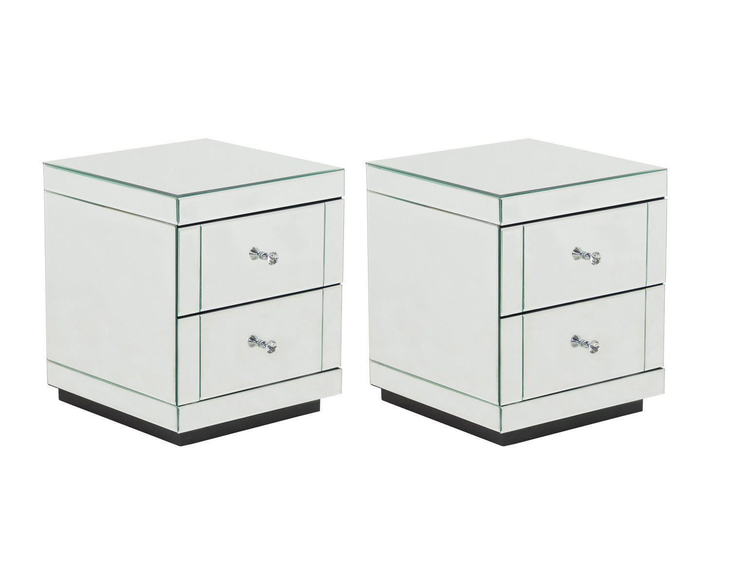 - 2x Two drawer mirrored bedside cabinet