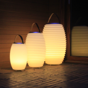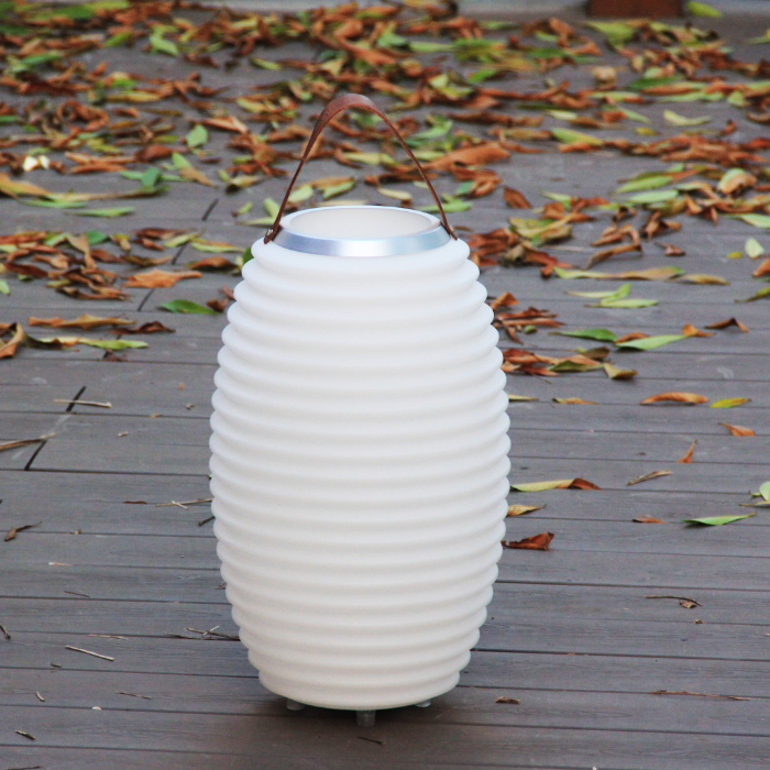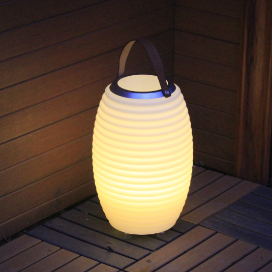 This stylish LED lamp not only provides ambient lighting but has a Bluetooth speaker and ice bucket at the top, all combined in one unit. Choose what colour lighting you prefer, there are 8 colour choices. With a soft leather carrying strap and brushed aluminum ring, the unit is rechargeable, waterproof and lightweight so easily transported around the home and garden. Comes in three sizes, small 35cm height, medium height 50cm, large 65cm
