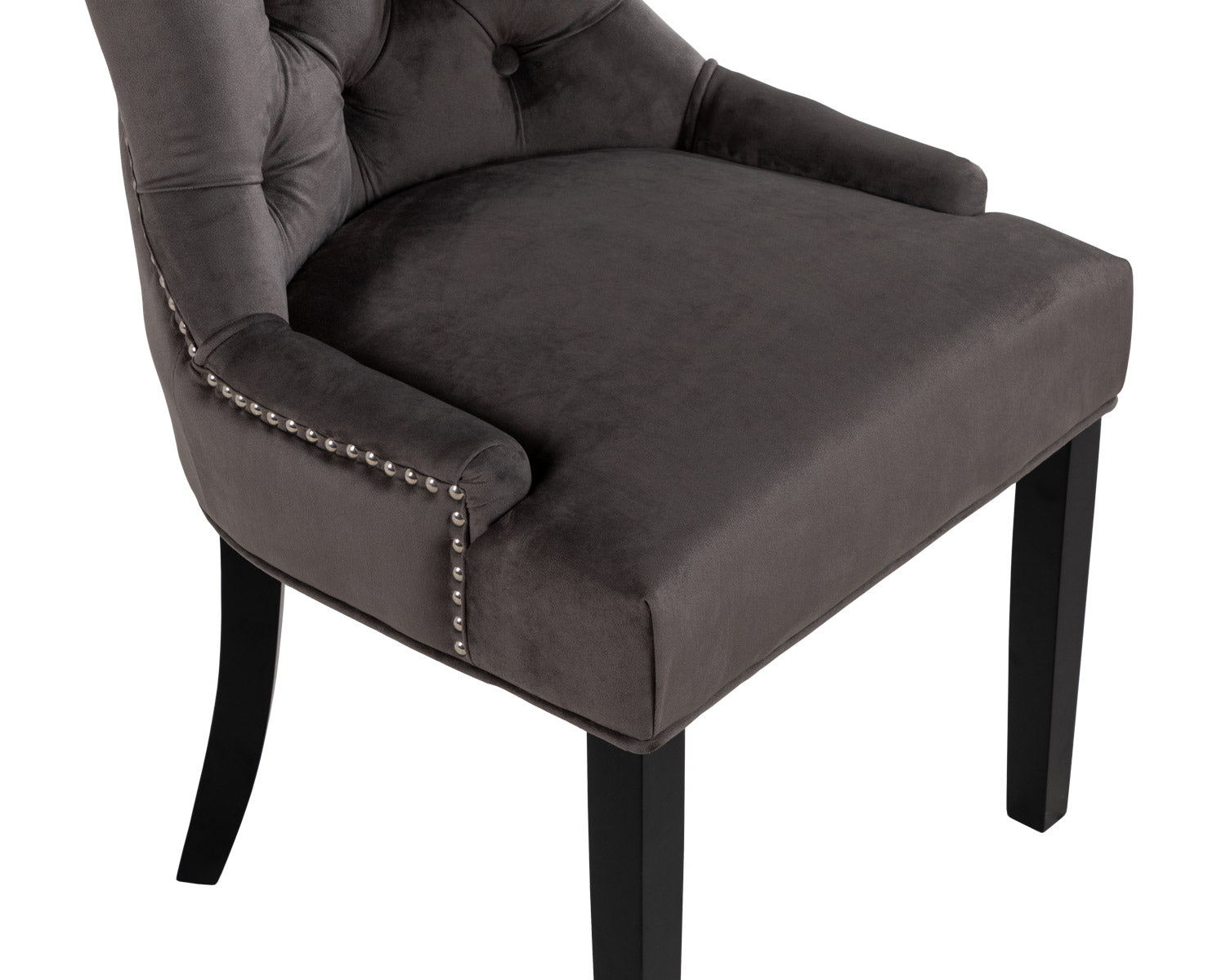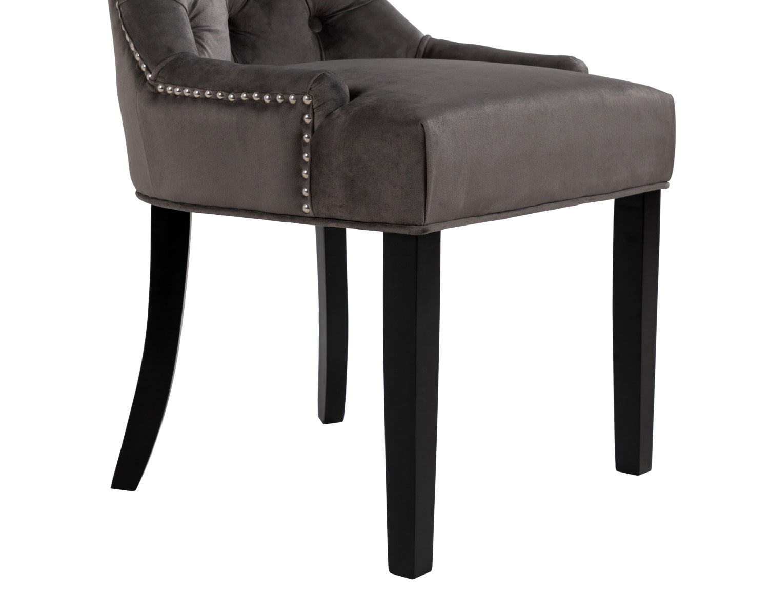 Pair of Scoop Back Verona Dining Chairs Grey Velvet with Black Legs and Chrome Knocker