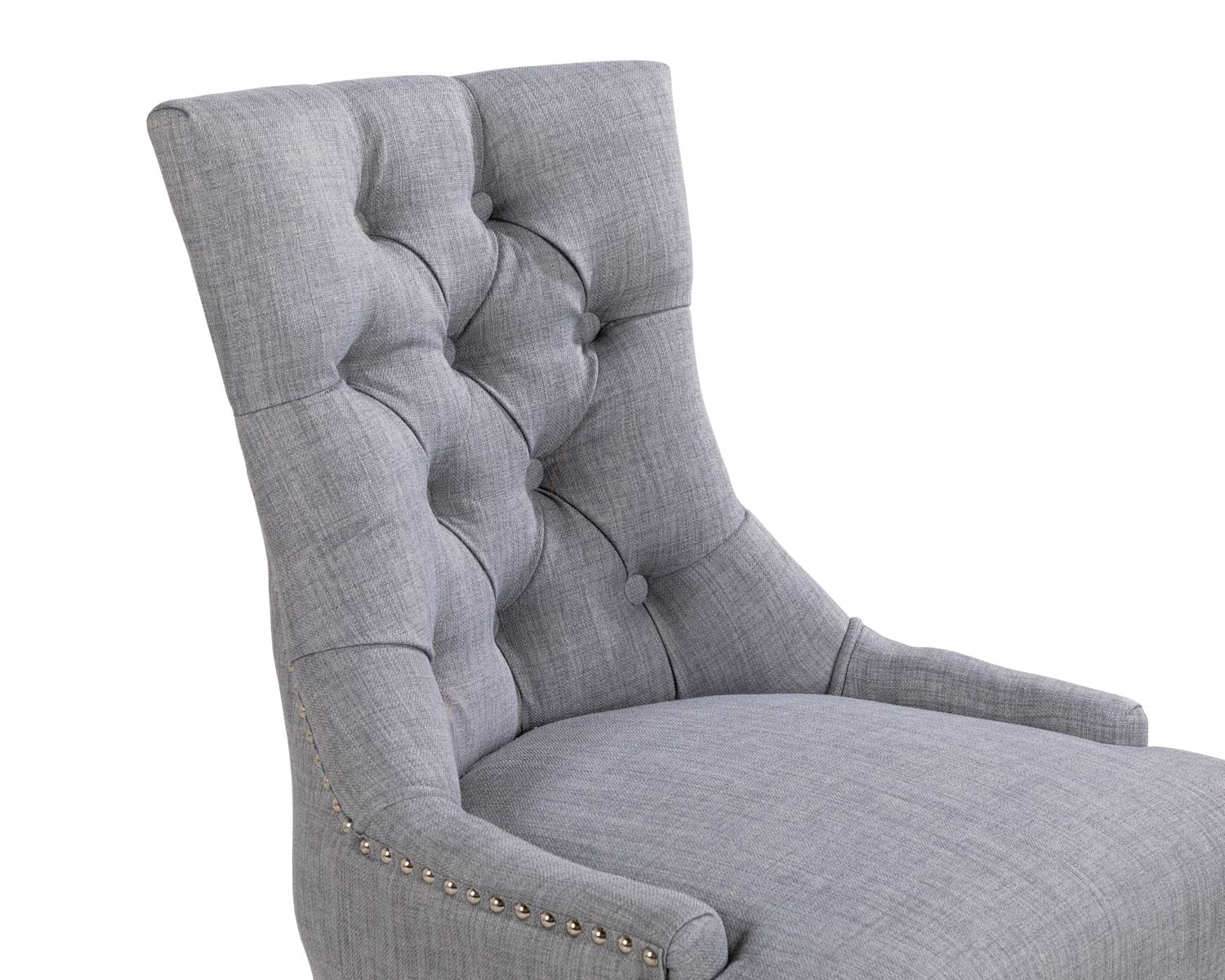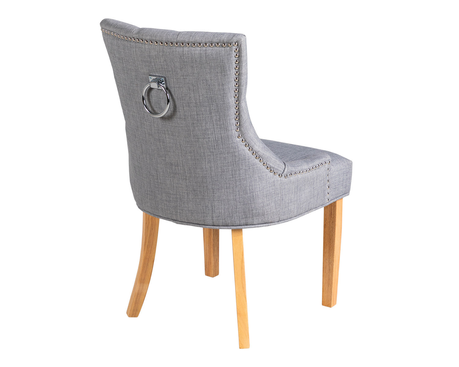 Pair of Verona Dining Chair in Grey Linen with Chrome Knocker and Oak Legs