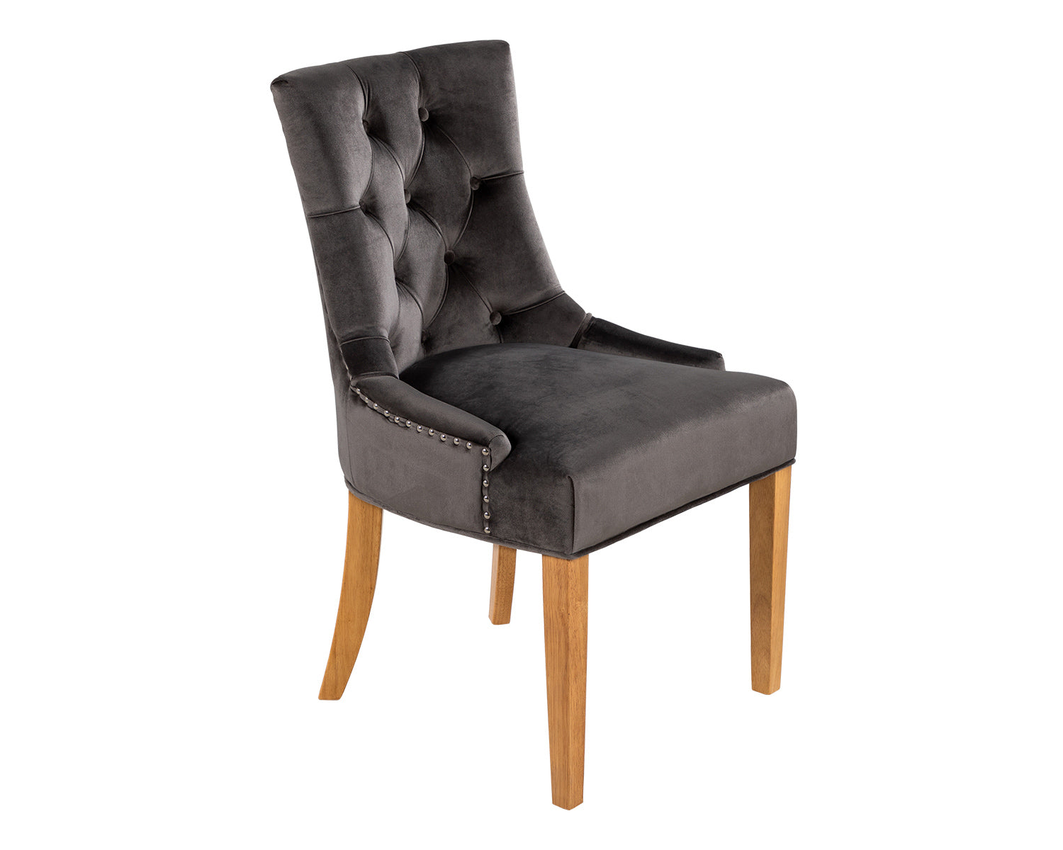 Create the perfect dining room with our Verona dining chairs and Devonshire table. Classy velvet upholstery is in a cool trendy grey, and cushioned allowing style and comfort into your home. The buttoned back rest is a classic look, whilst the chrome knocker and studs that cover the back of the chair, add a chic touch. A simple instruction manual allows you to set up these chairs with ease. The chairs perfectly match the Devonshire table which has a simplistic look, that will suit a range of stylish decors. The four thick oak finish legs are designed to last a lifetime and will suit a range of stylish homes.