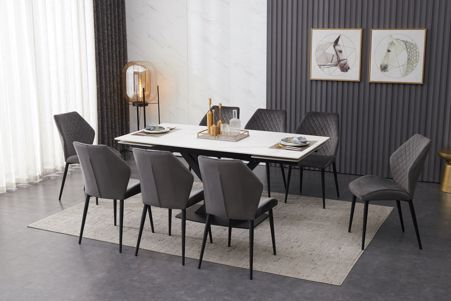 ceramic grey extending dining table inc 8 grey faux leather chairs