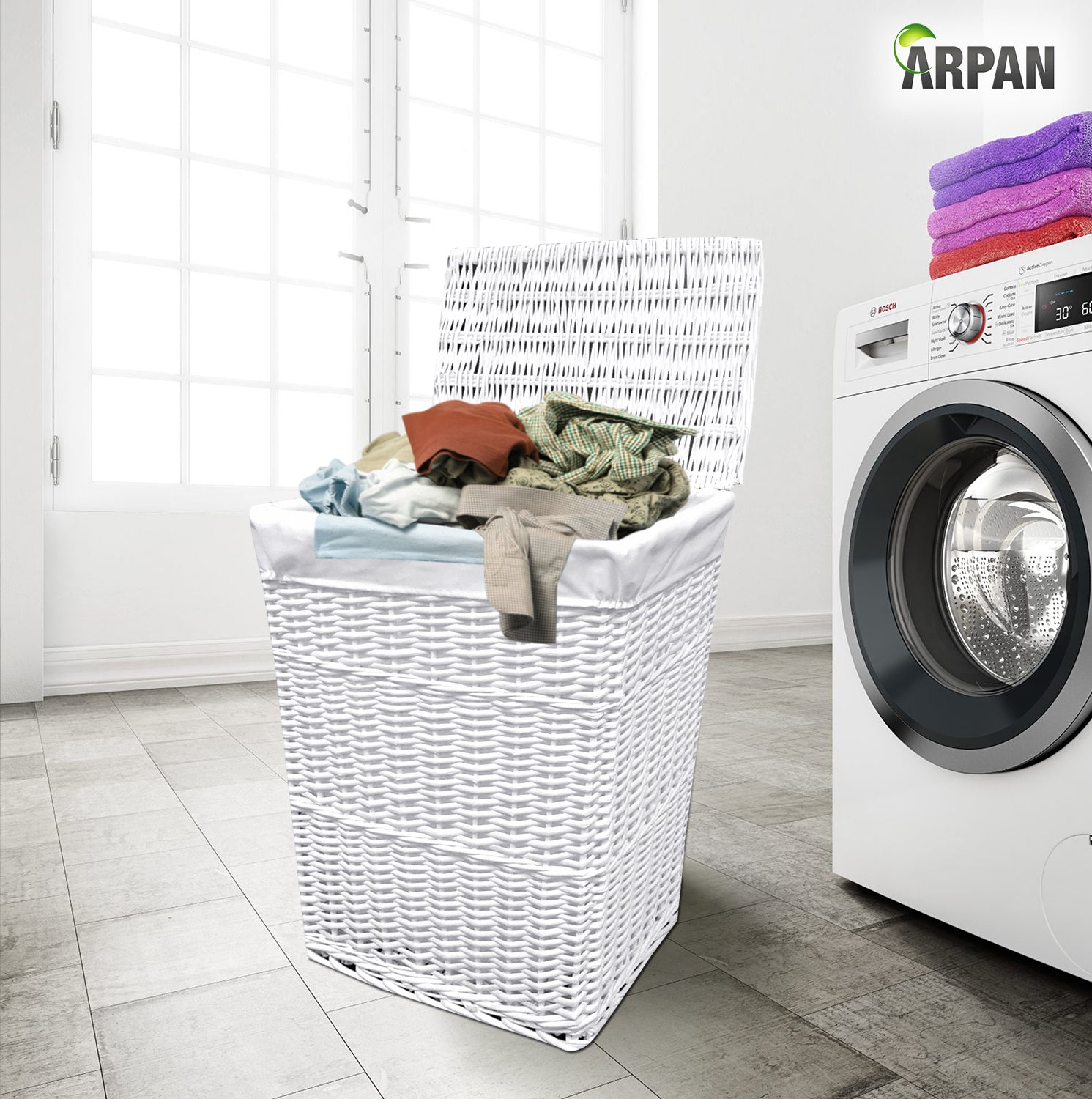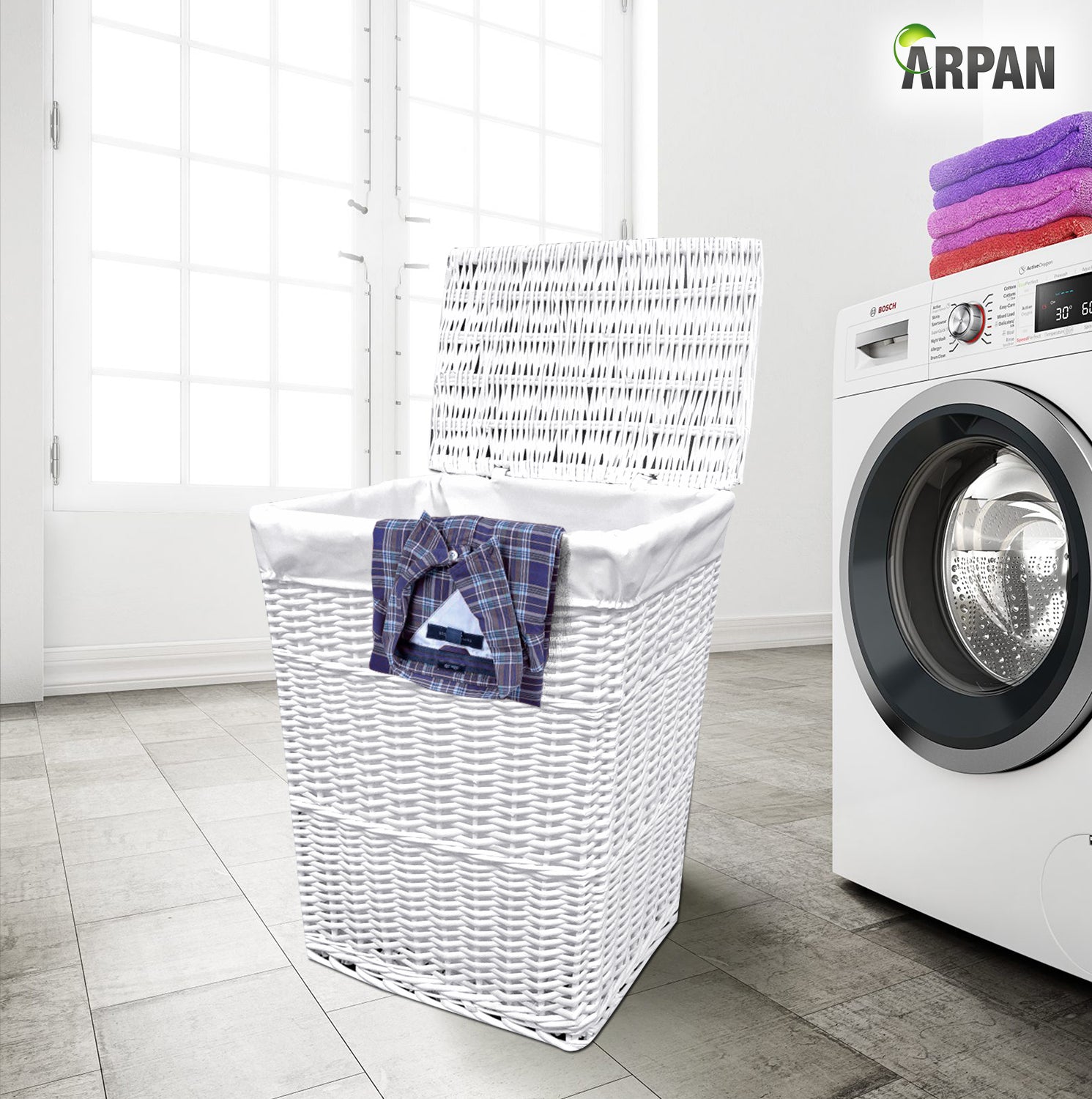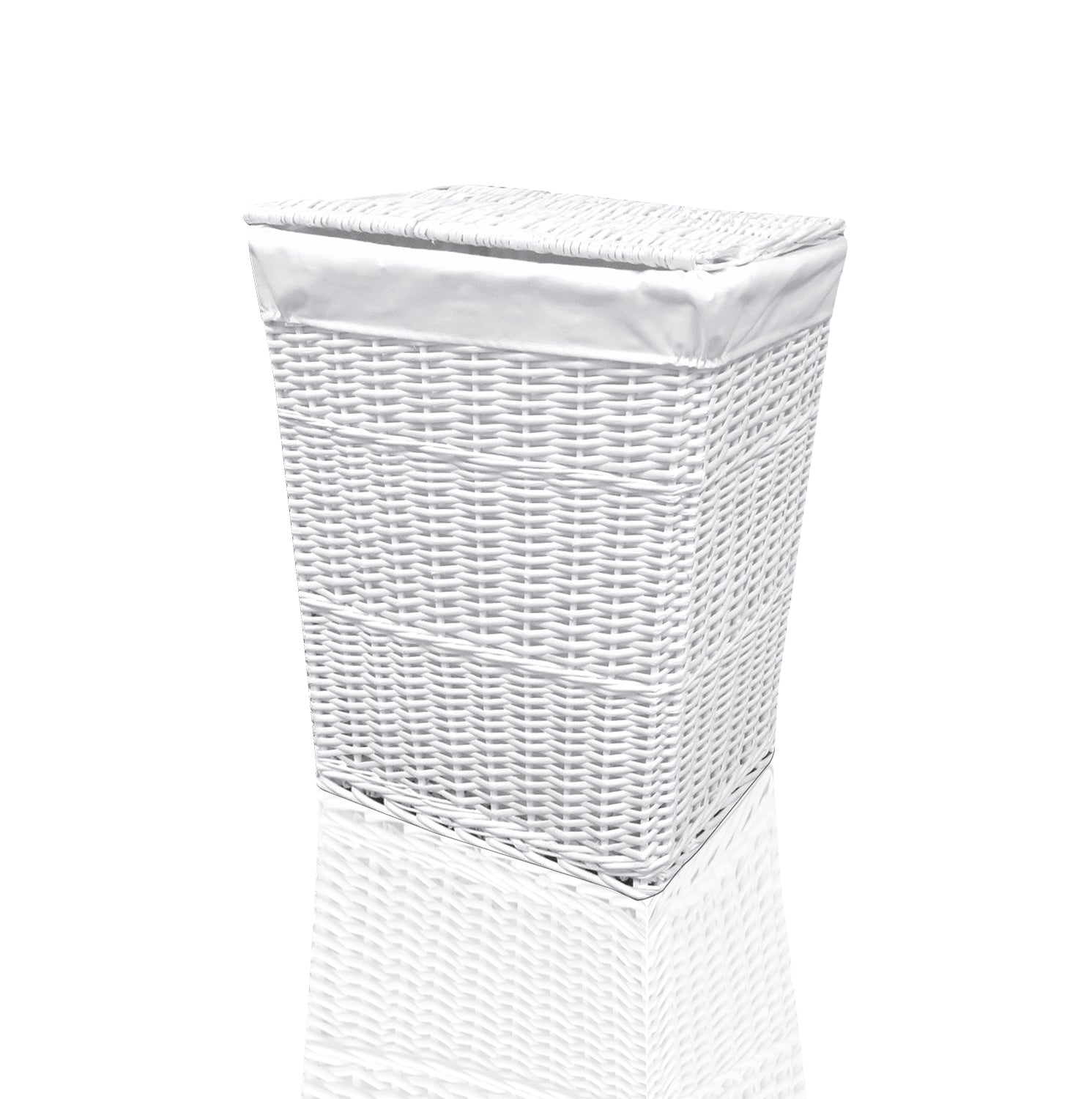 Arpan Medium White White Wicker Washing Cloth Basket With White Lining