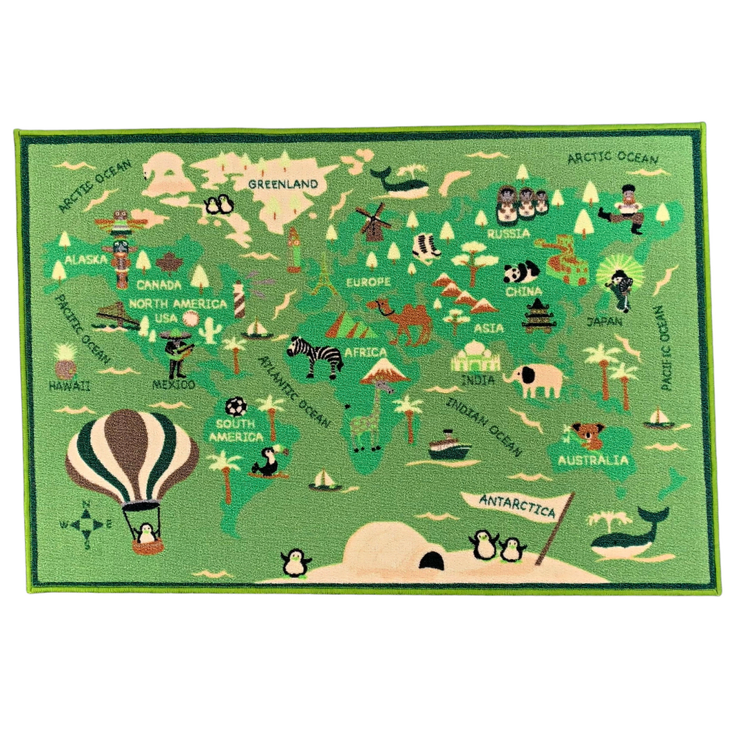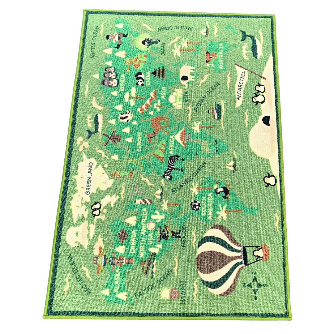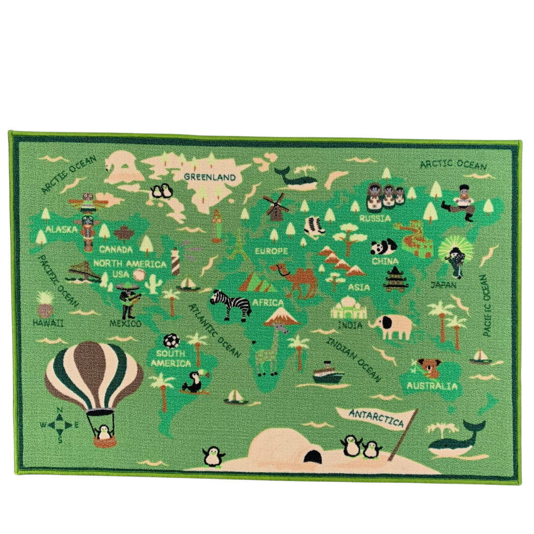 Non Slip Polyester Area Rug World map Animals Playmat for Living Room Hallway Children Kids Carpets