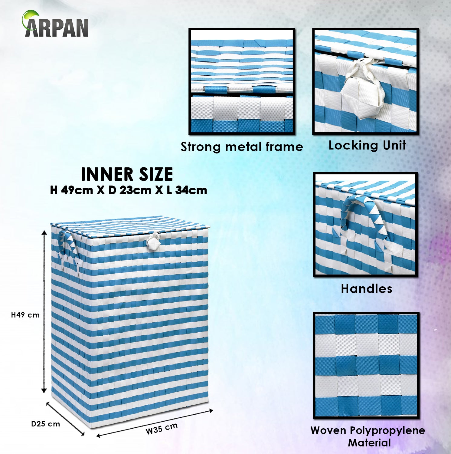 Arpan Washing Baskets for Laundry Plastic bin Hamper Storage Basket Blue - White Nautical Design 44 litres Capacity Light Weight