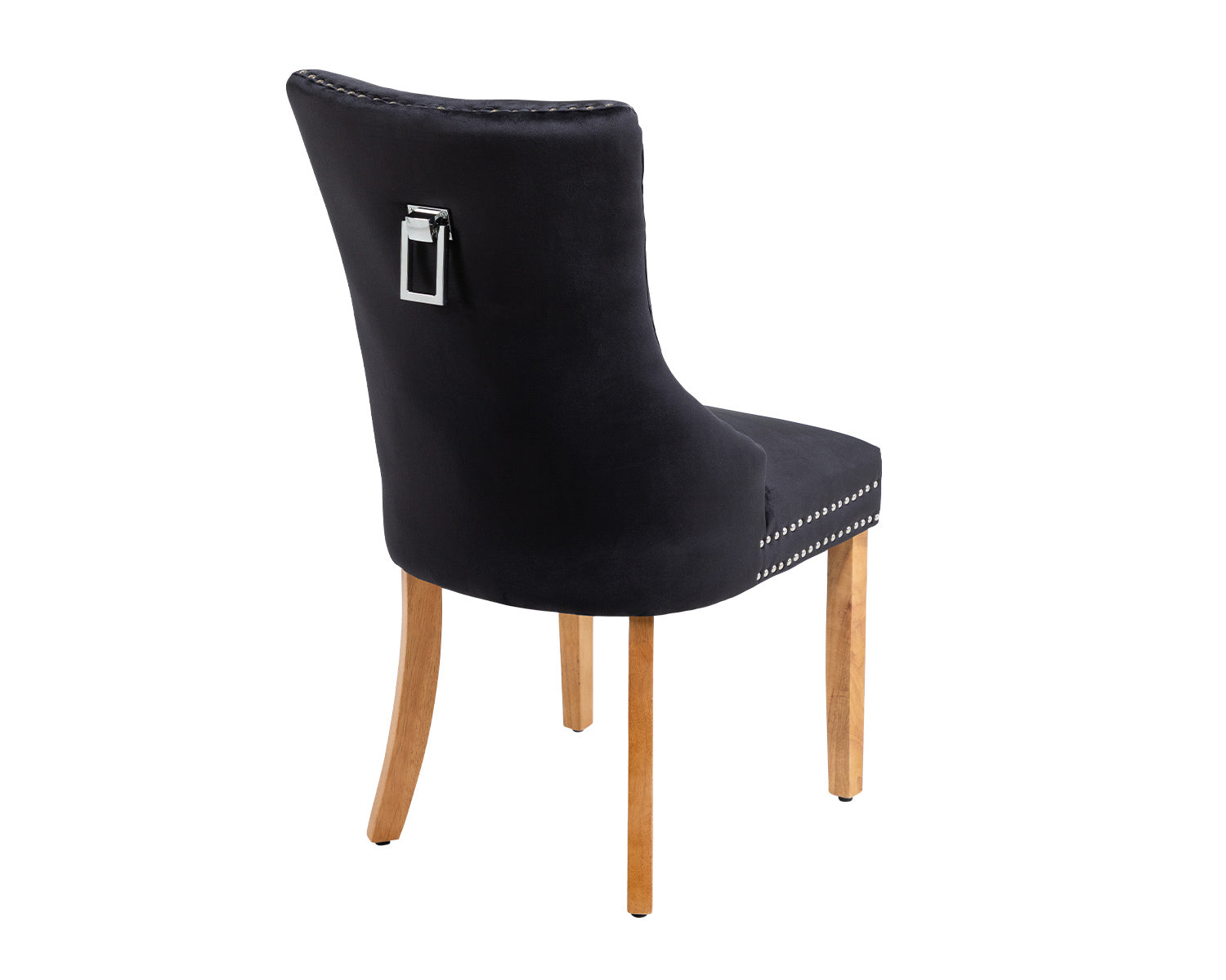 Ashford Dining Chair in Black Velvet with Square Knocker And Oak Legs