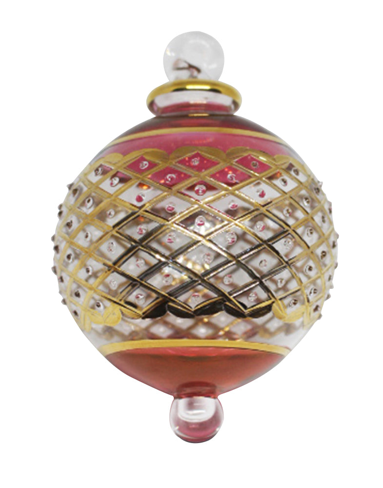 Byzantian handmade, glass Christmas tree baubles are hand-painted in luxurious rich, jewel colours: amber-gold, fire red, deep sea green and inky-blue with a deep band of Moroccan inspired gold lattice etching. If you prefer silver baubles, we also offer clear glass Byzantian baubles with a silver etched band. Byzantian Christmas baubles are sure to give the maximum shimmer factor and luxury feel to any Christmas tree.
