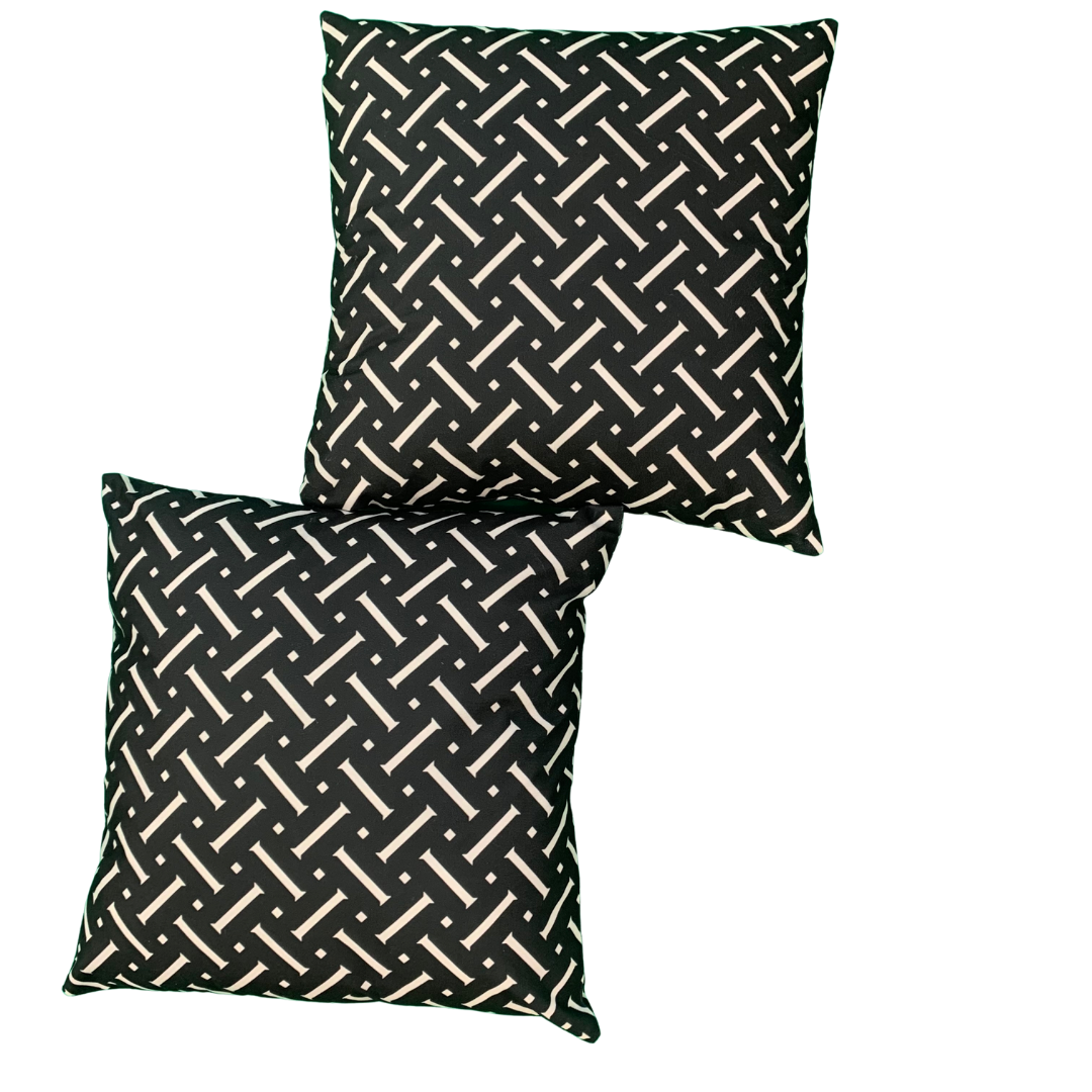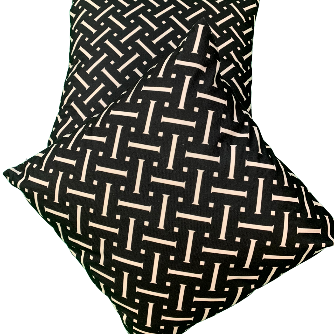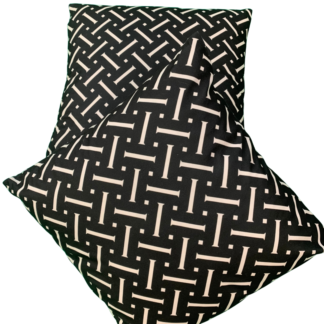 2 x Black & White Plush Cushion Covers (47622) Linen 45 x 45 cm Square Premium Soft Furnishing, Sofas, Beds, Indoor, Outdoor