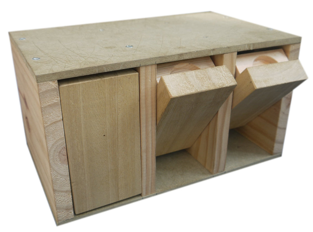 Standing doors that flap. Hold the door in at the bottom to retrieve the treat from the top
