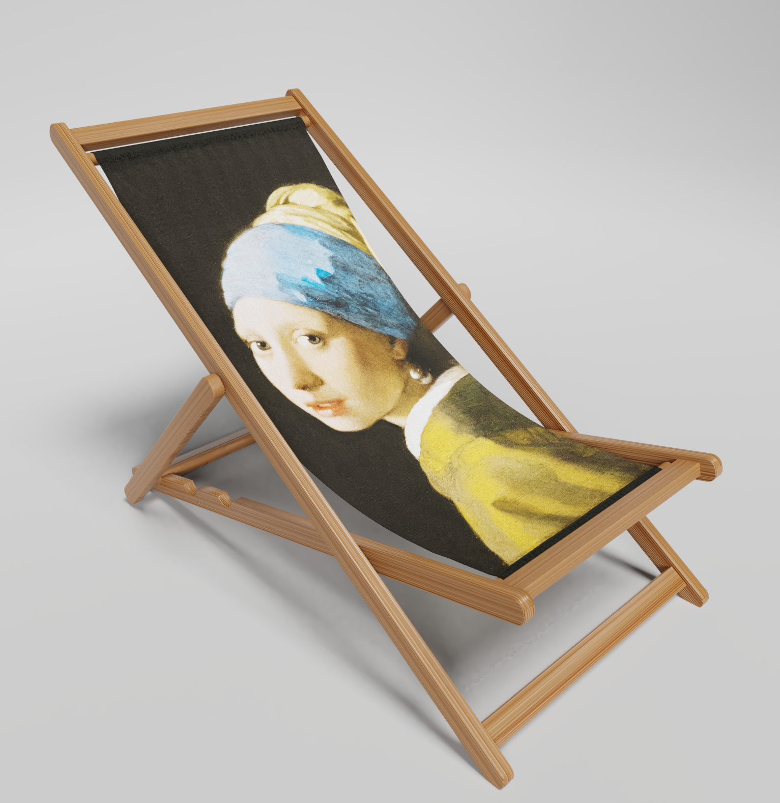 Traditionally styled folding deckchairs made from FCS sustainable eucalyptus wood. The 100% washable polyester seat features one of the best know paintings in the world. A glamourous deckchair for balmy days and evenings at home. Weight is 8K, measurements are L 100 x W 60 x H 78.2 cm