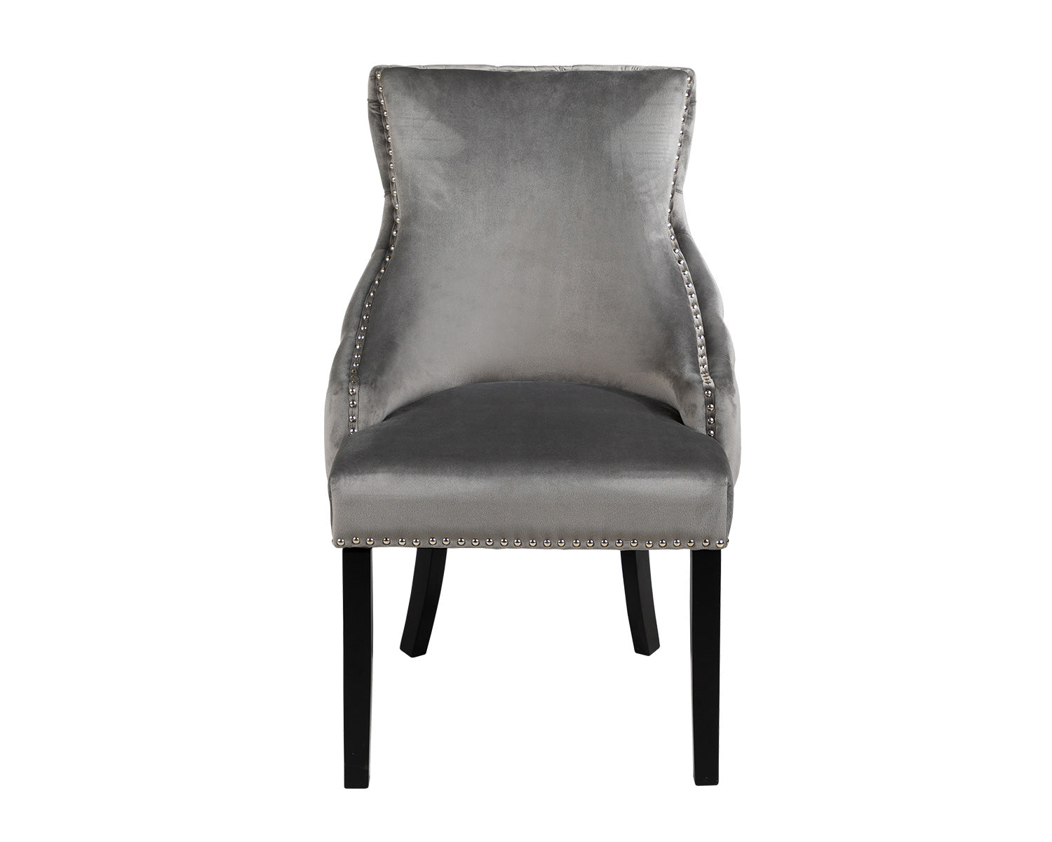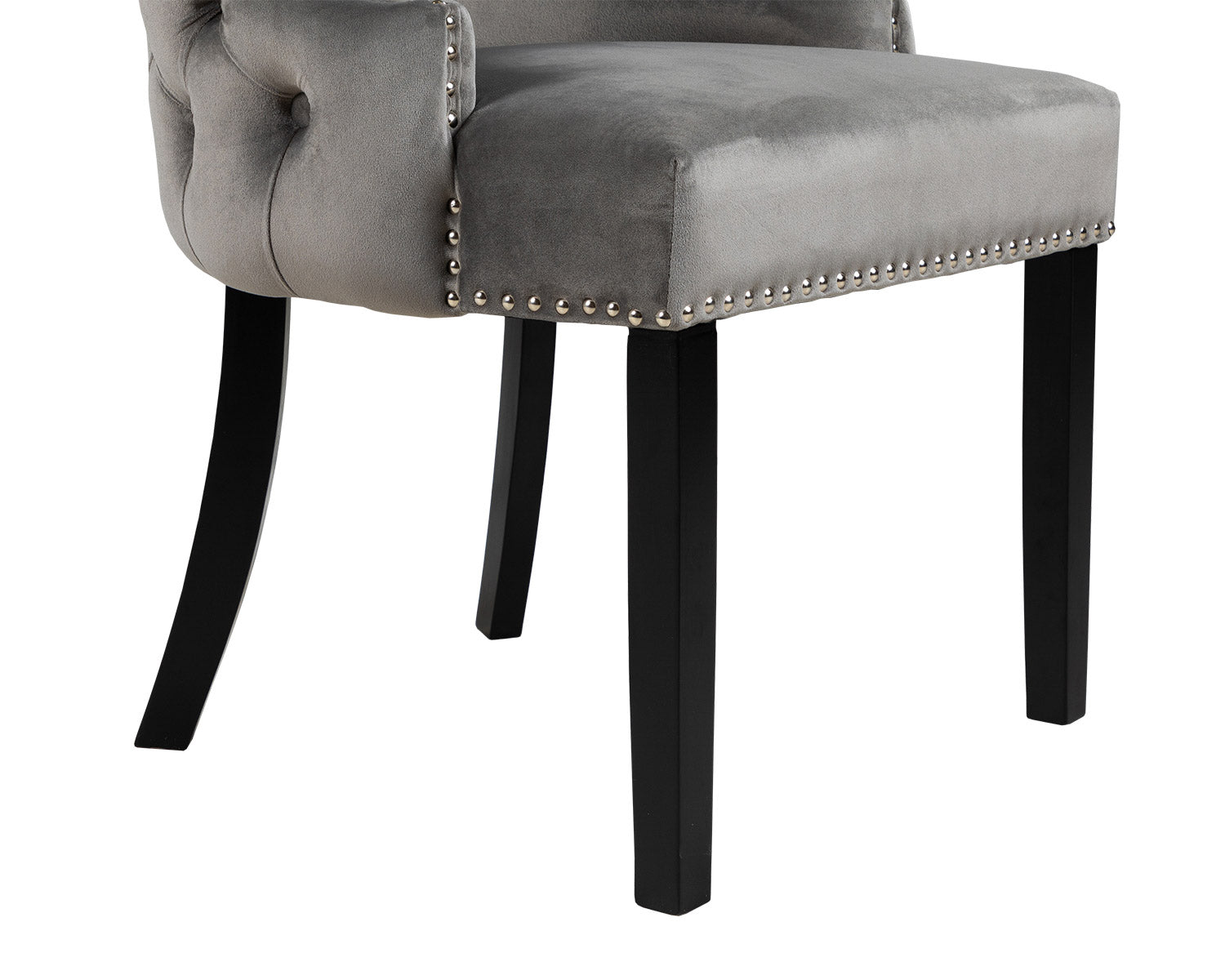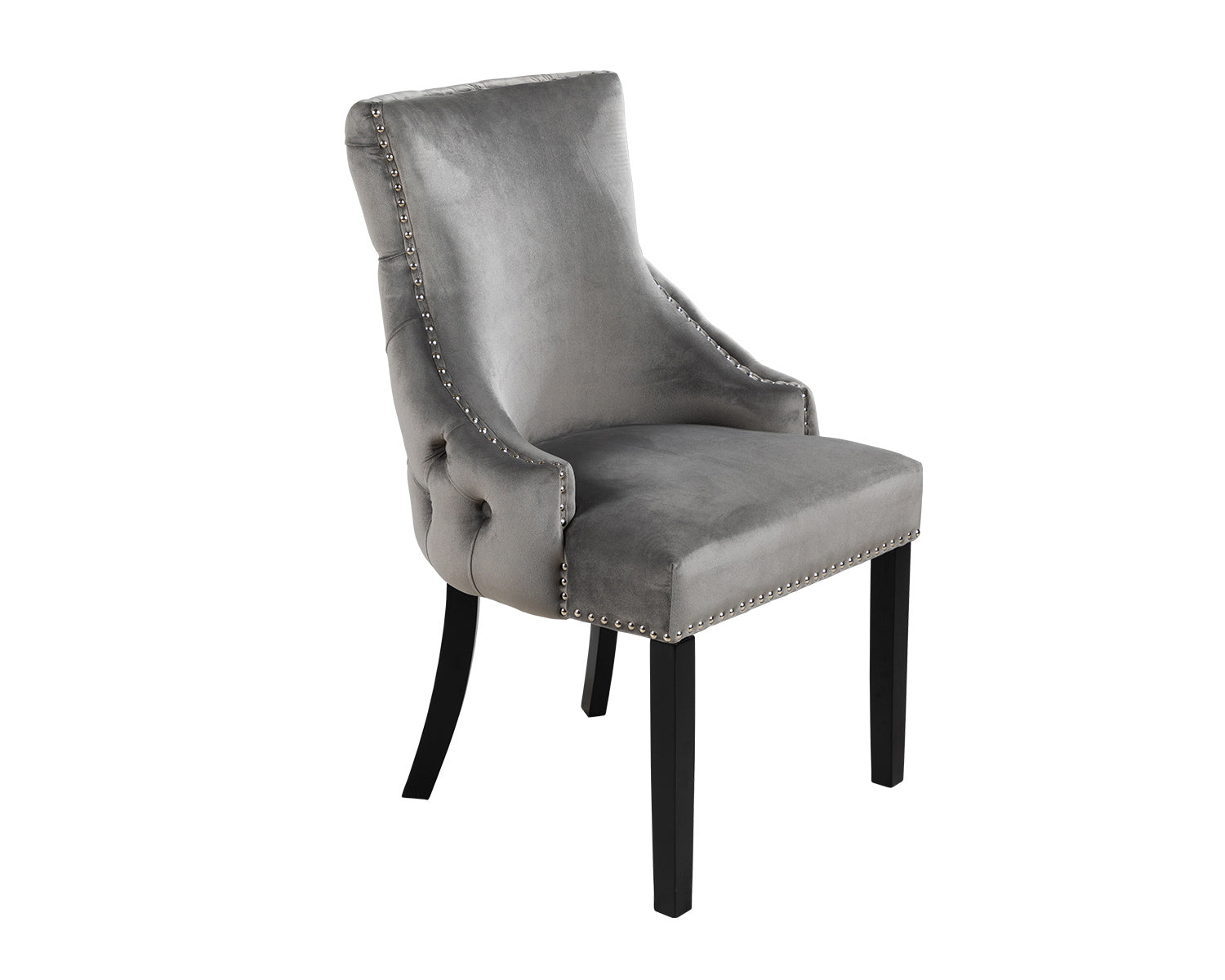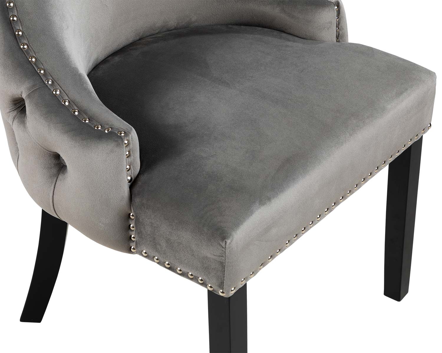 Elizabeth Dining Chair in Grey Velvet with Black Legs