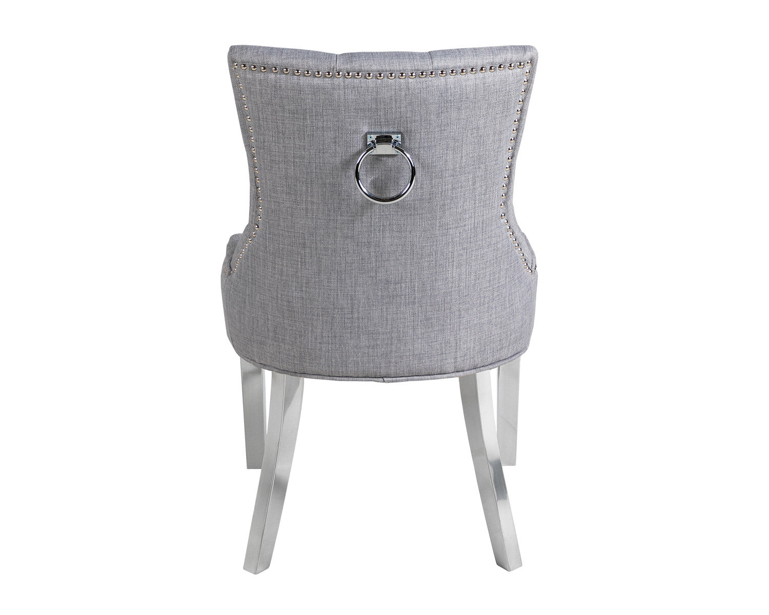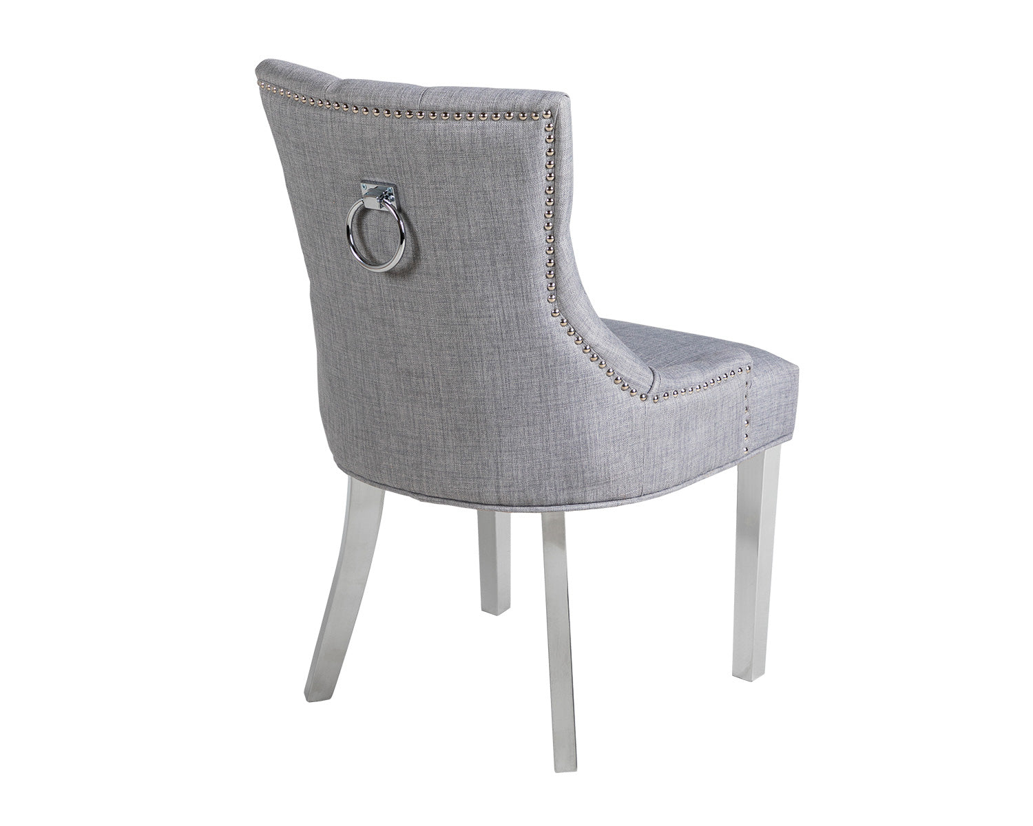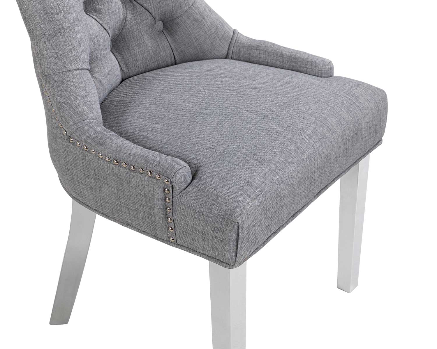 Verona Dining Chair in Grey with Chrome Knocker and Chrome Legs