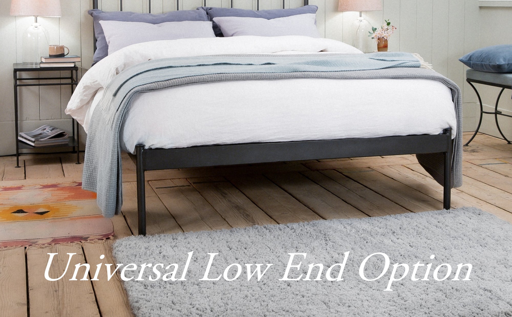 Our Handforged Florence Iron Bed is an absolute classic of design, updated by us and featuring our trademark styling of curls handforged from solid bar. Handmade by craftsmen using traditional skills, with it’s contemporary update design this bed is equally at home in a cottage, country or town house. Available in all standard sizes and colours with a solid divan base. The Florence Iron Bed is also offered with the option of our universal low end. Made to order: 8 - 10wk delivery.