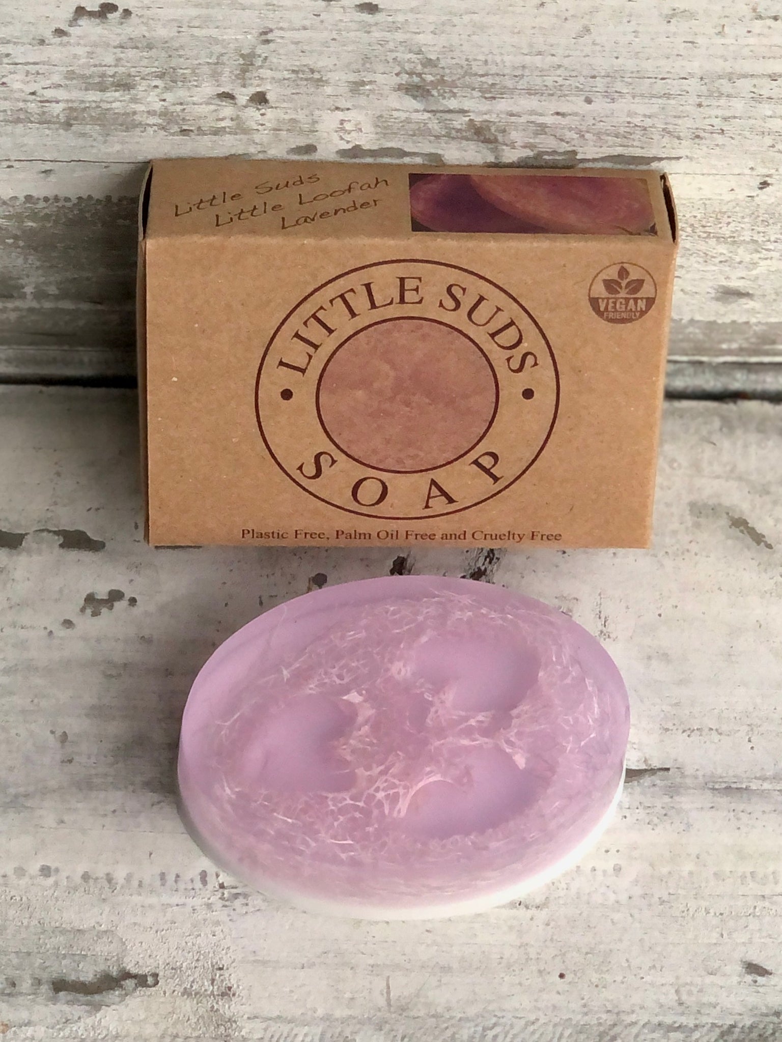 Little Loofah Lavender Soap – This beautiful handmade soap contains a slice of natural loofah to help gently exfoliate dull, dead skin cells revealing beautifully soft & vibrant skin below.