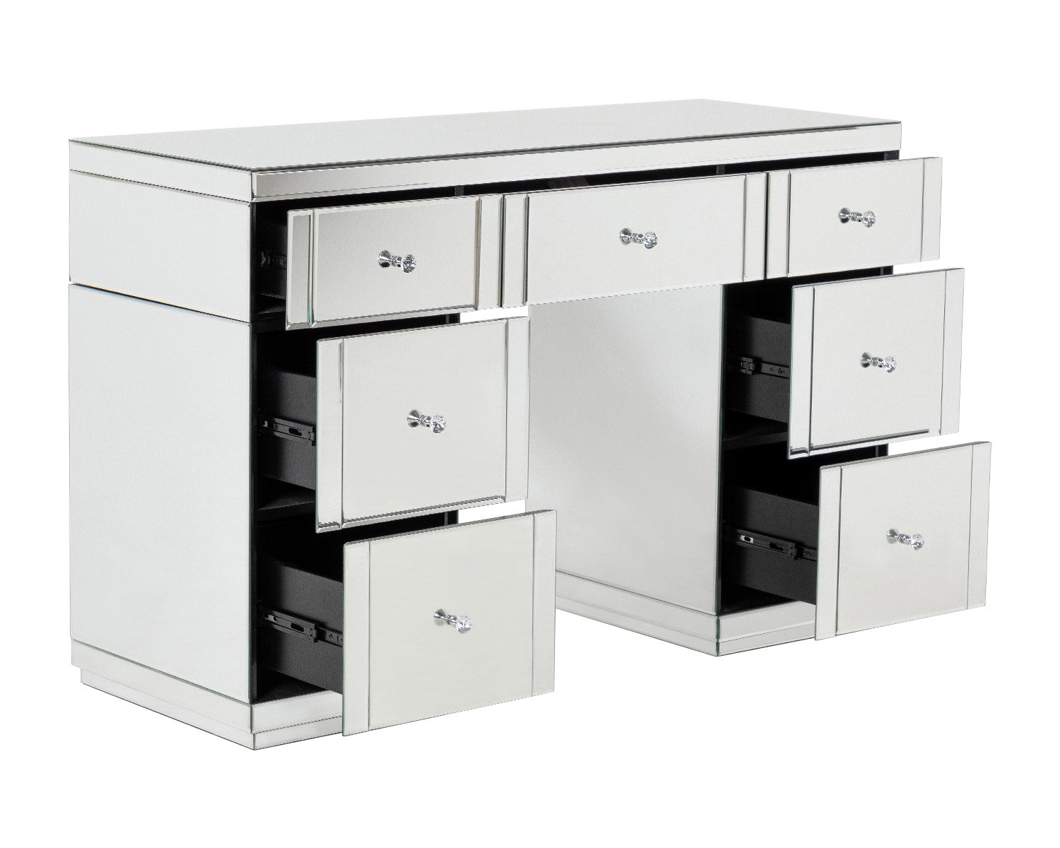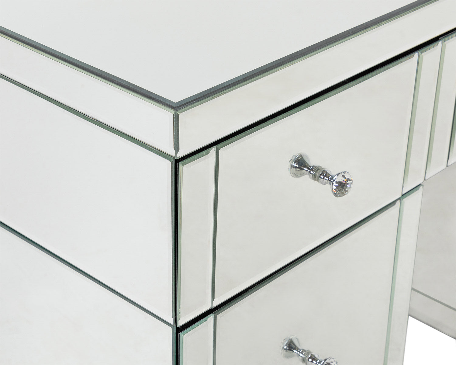 Brighten up your bedroom or living area with the Monroe silver mirrored chest of drawers. The chest has seven drawers, so you’ll have plenty of room to store your bits and bobs to create a clutter-free environment. The mirrored look gives the impression that there’s lots of room in your home. Feast your eyes on the crystal handles, that compliment the mirrored finish and will brighten your home.