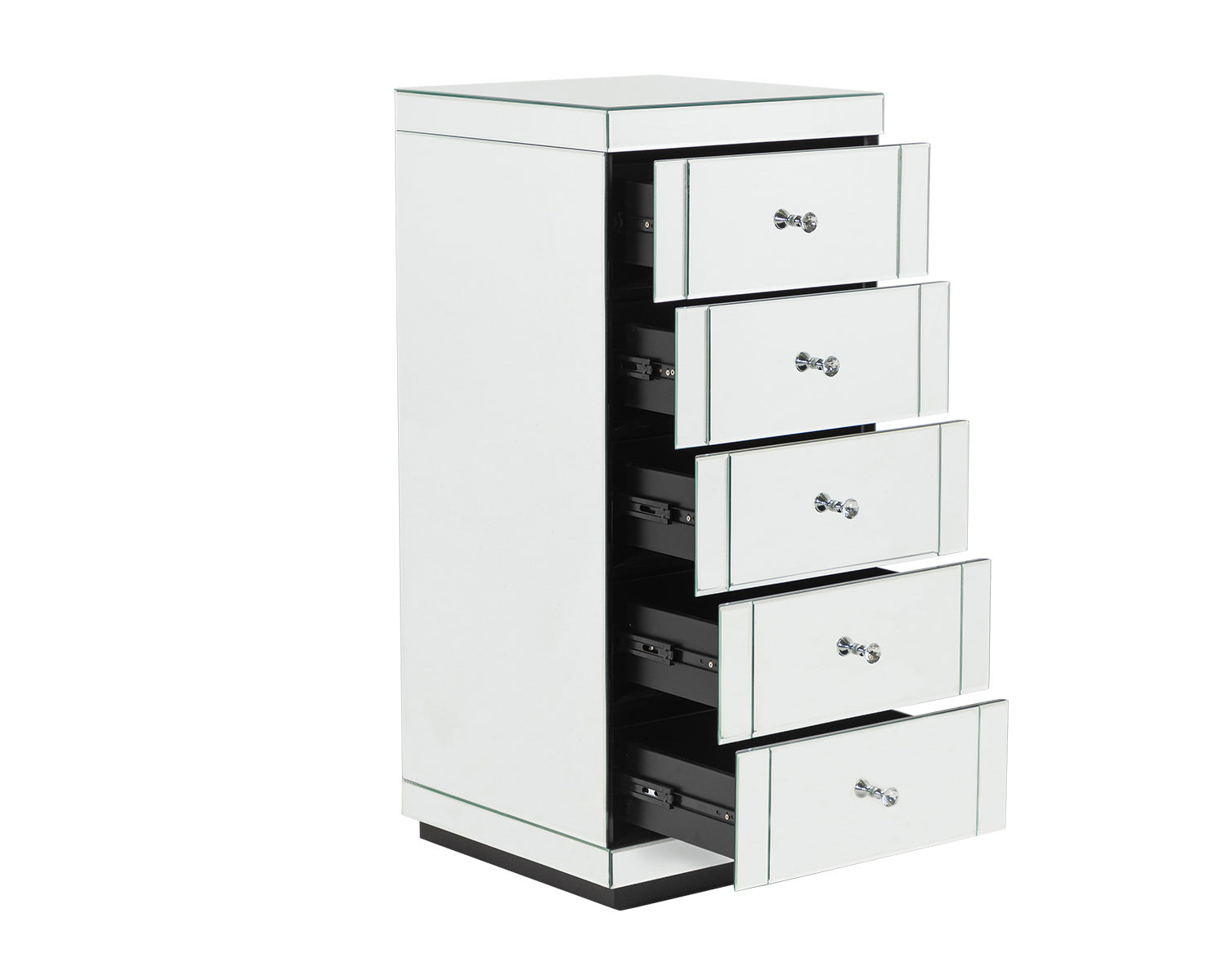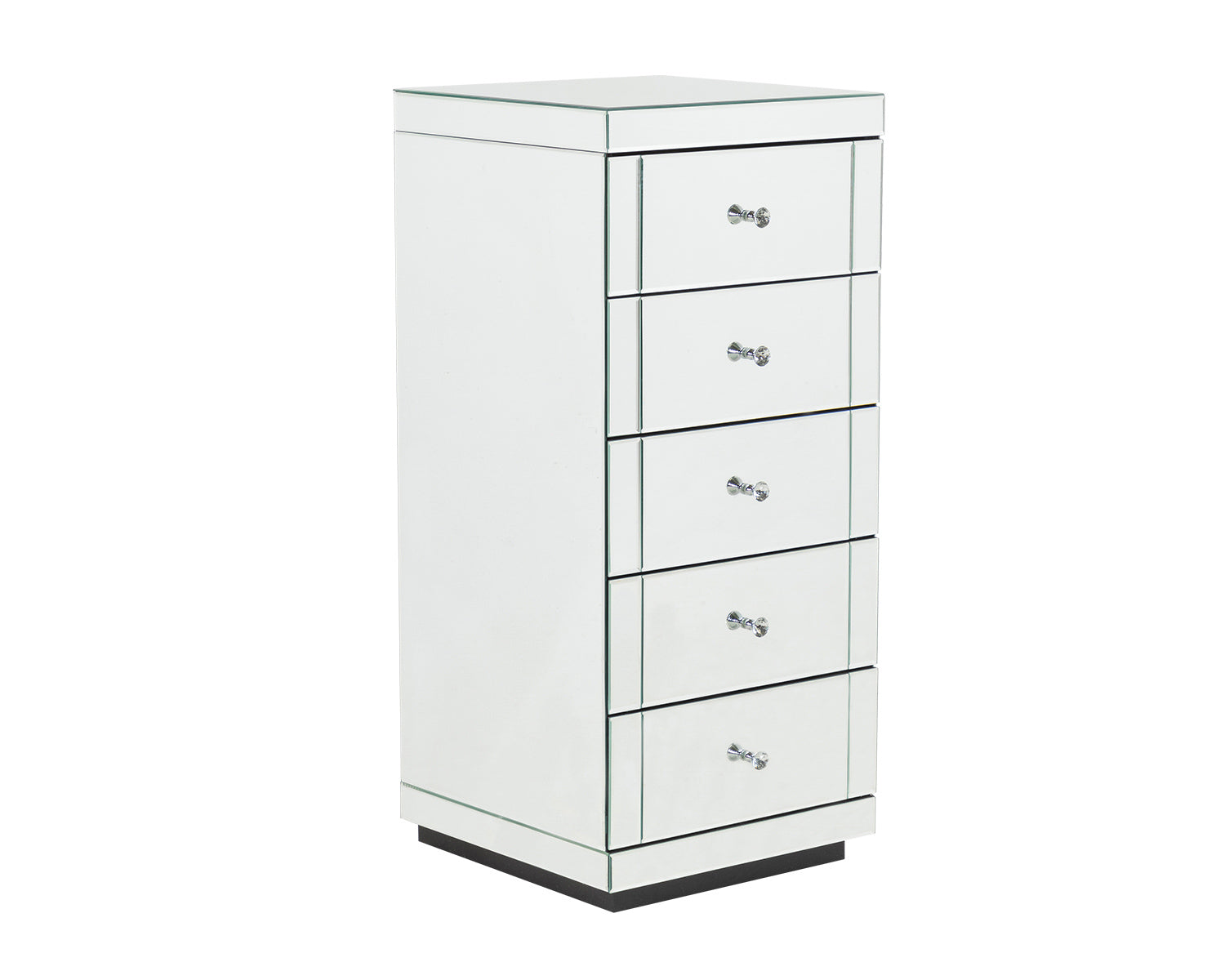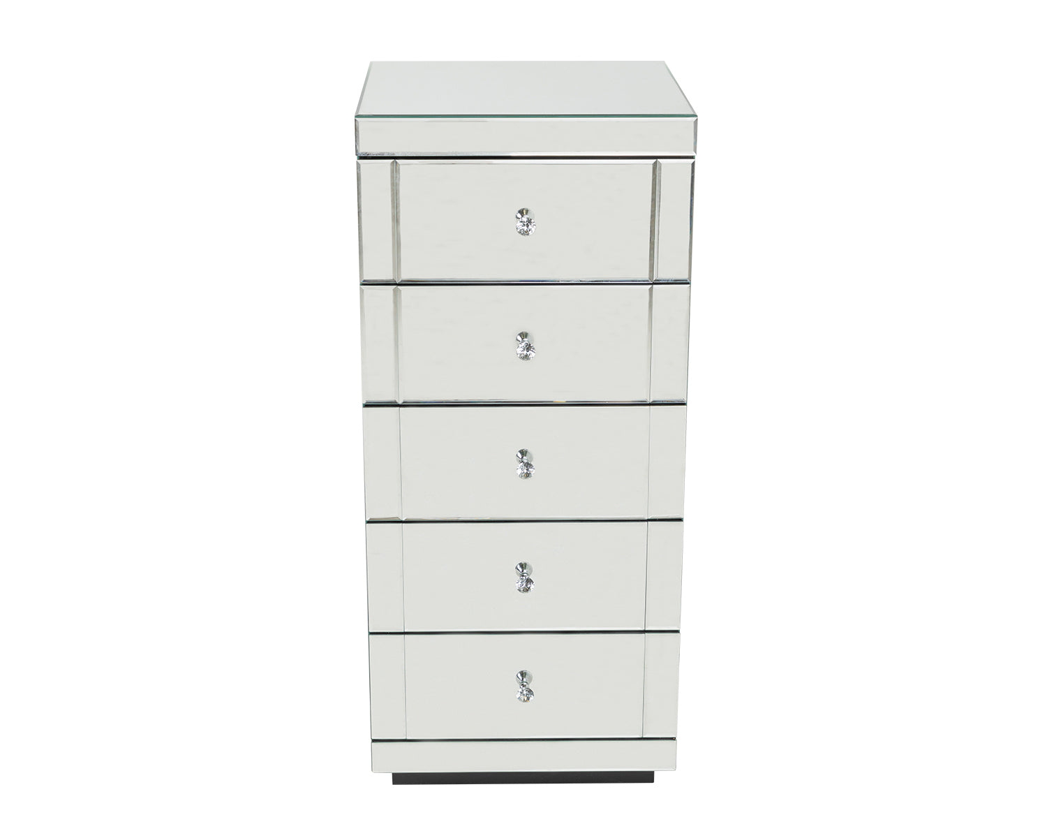 Monroe Silver Mirrored Tallboy with 5 Drawers