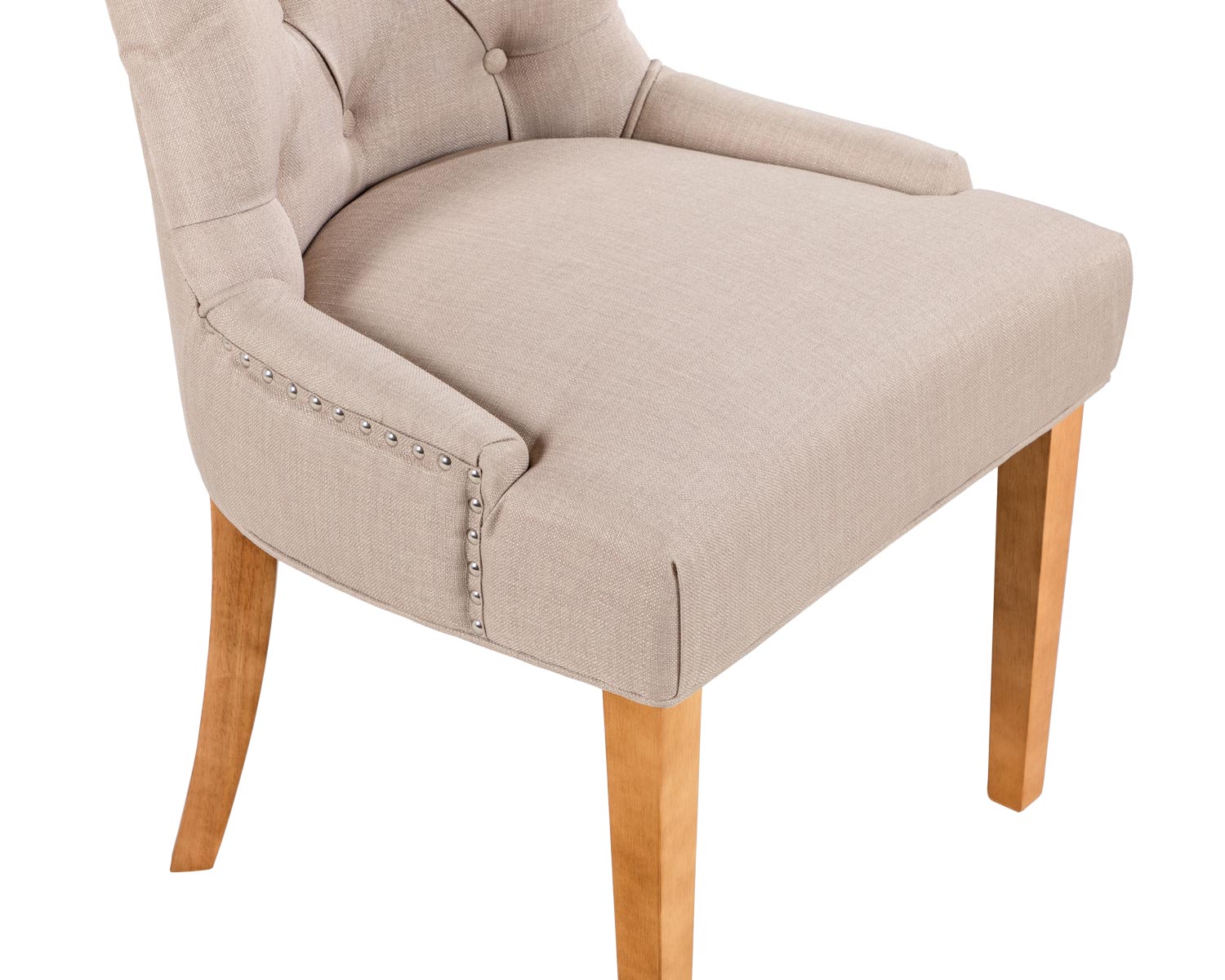 Transform your dining room by adding the Verona cream linen chair, which will certainly add elegance and comfort to your home. The buttoned back rest is a classic look for a dining room setting. The padded back rest and cushioned seat create the perfect place for you to relax. If you want a pair of chairs that will add a hint of refinement to your room then the glamorous polished chrome pull knocker handle and studs will do just that. Brilliantly carved oak legs make the base, with supportive rubber pads, which allows the chairs to be added in any room. So whether you’re wanting an additional chair for your dining room, or a chair for those extra special occasions the Verona range is the perfect addition.