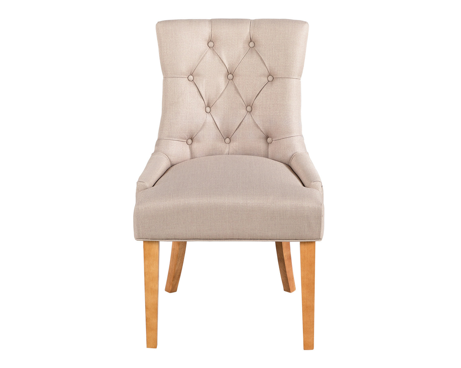 Classy and stylish, the four cream linen dining chairs with contemporary Devonshire table brings, a lavish look to your home. Cushioned seating with cream linen upholstery offers a wonderful dining experience. The intricate buttoned back, gives this chair a timeless charm. The luxurious chrome studs that caress the outside of the chair complete the chic look. The four solid oak legs have a protective base, ensuring that these chairs can be used on any surface. Elegant and pleasing on the eye the Devonshire table is clean and ultra modern, it comfortably sits six people so it is the best centre piece for your home.