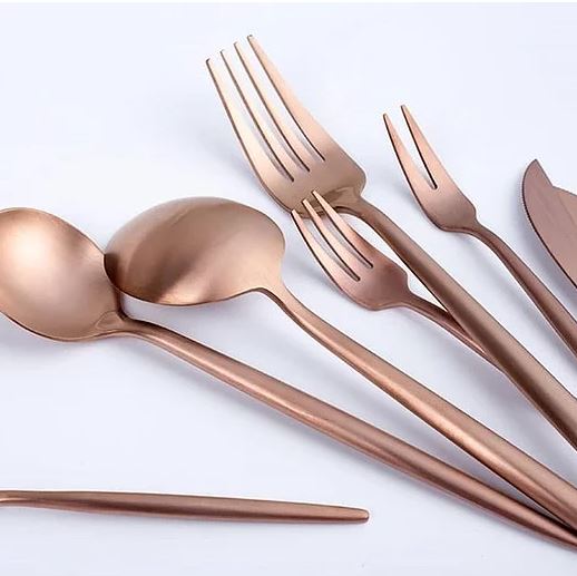 Our one tone cutlery set is available in either rose gold, gold or matt black.