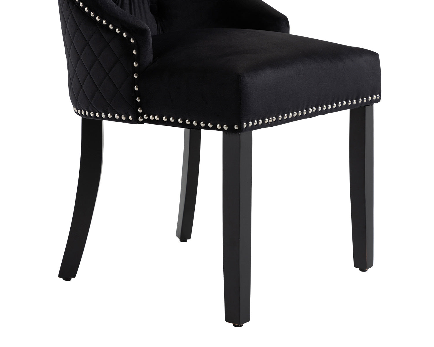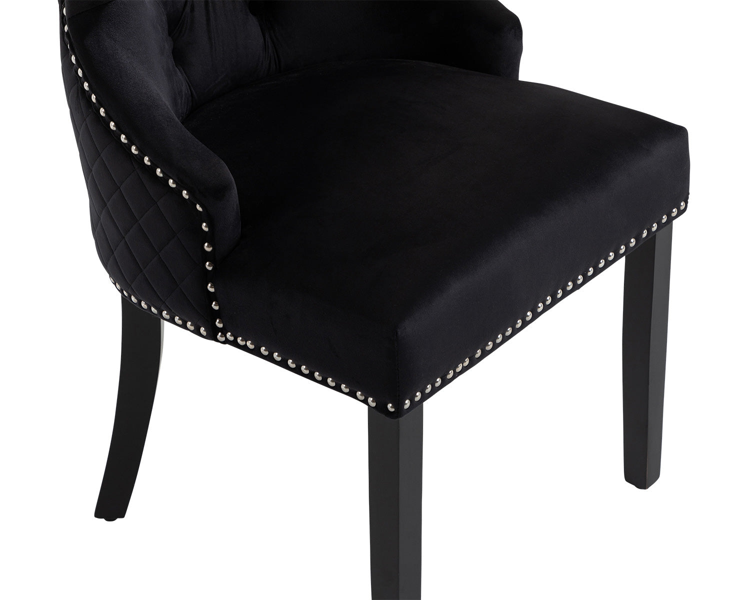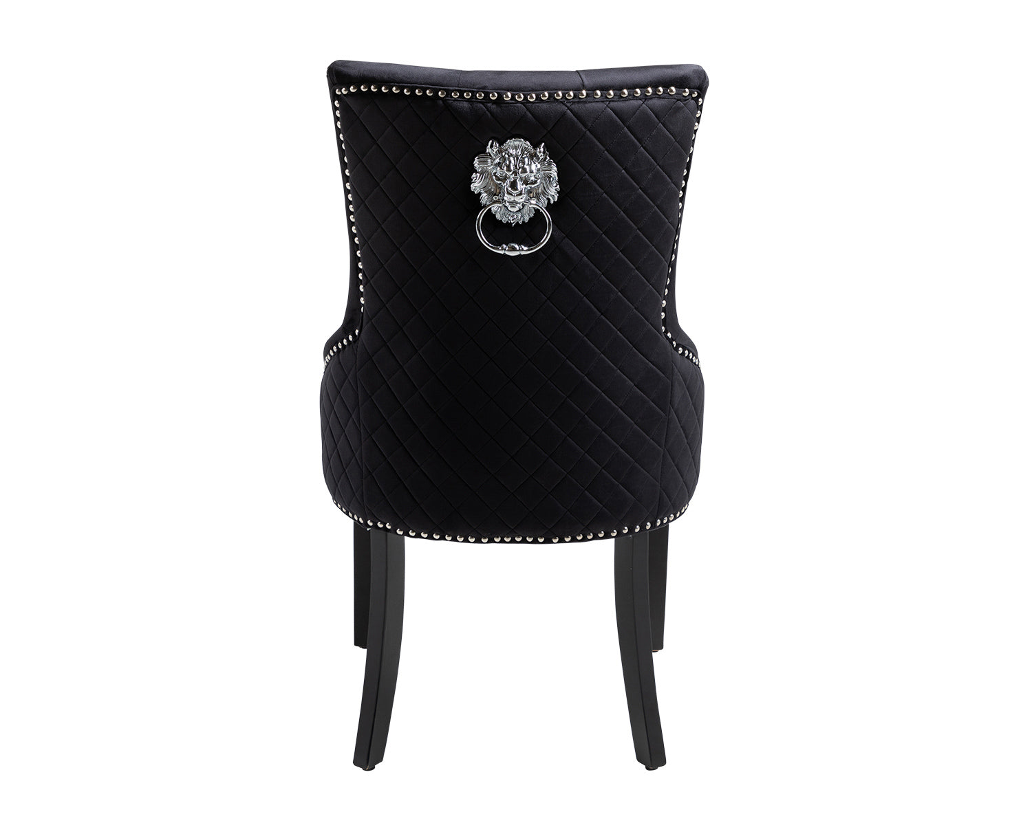 Sandhurst High Back Dining Chair in Black Velvet with Chrome Lion Head Knocker And Black Legs