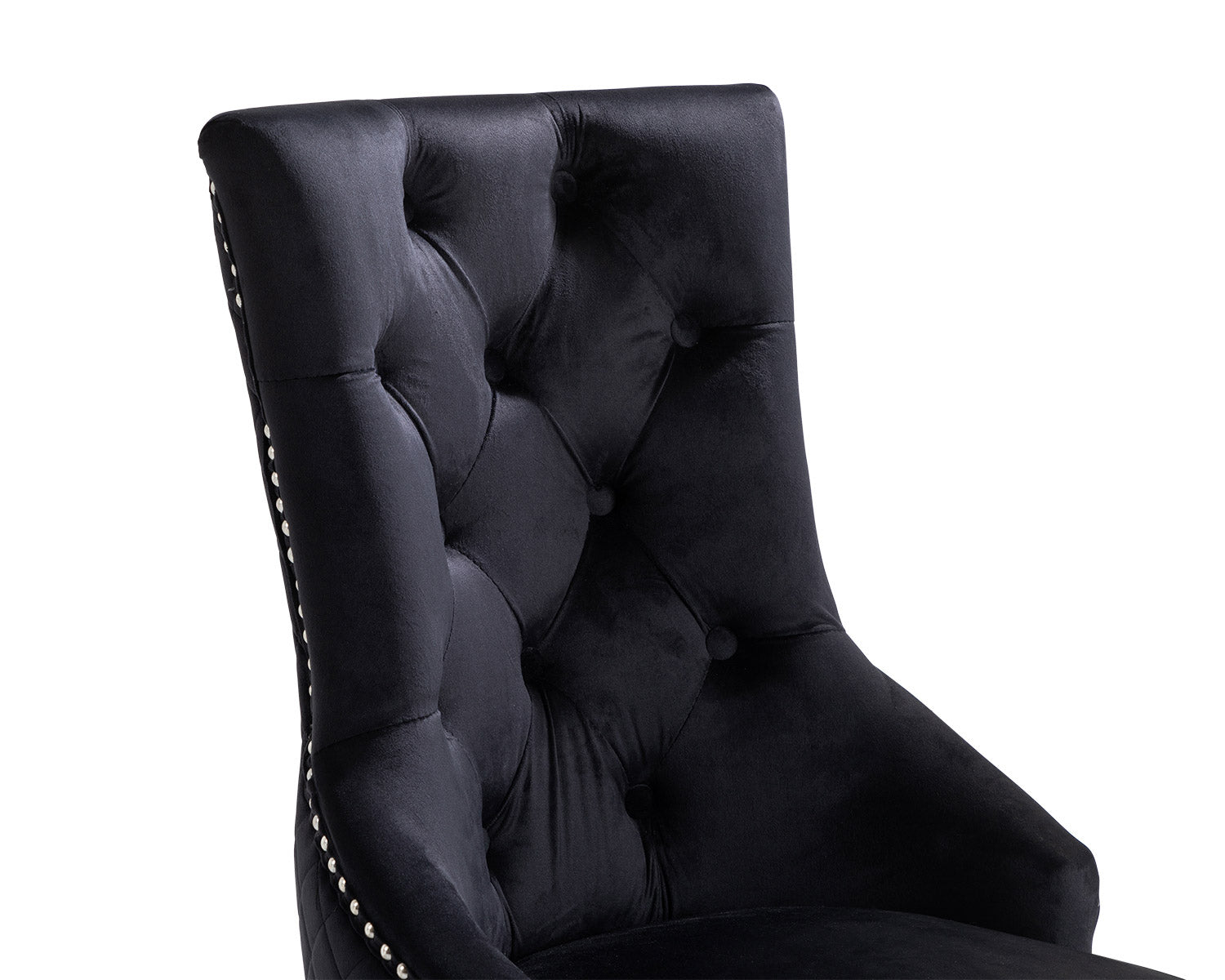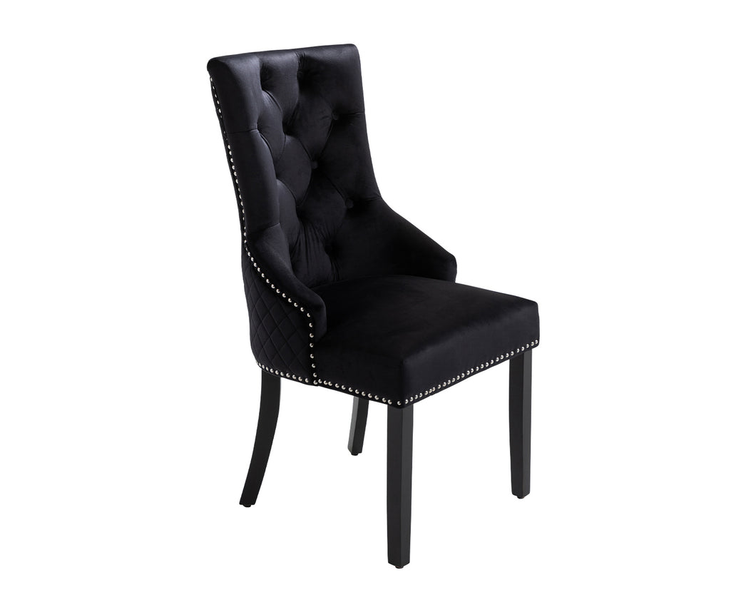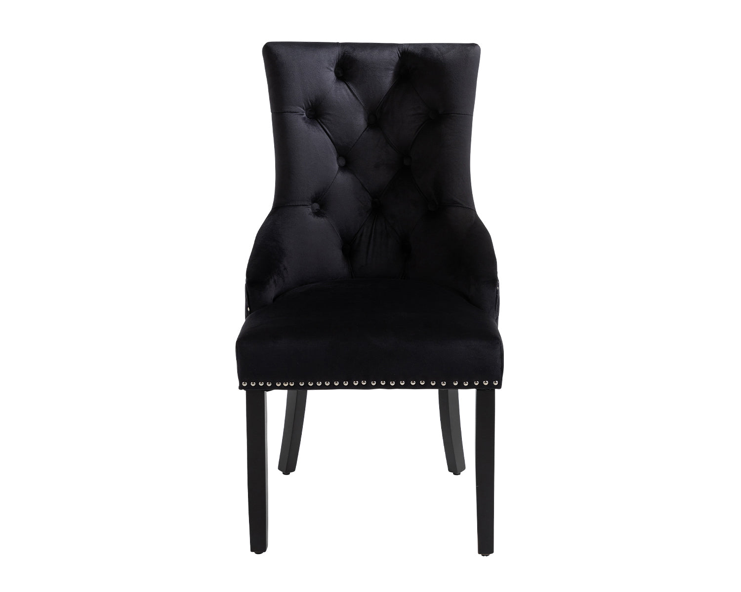 Sandhurst High Back Dining Chair in Black Velvet with Chrome Lion Head Knocker And Black Legs