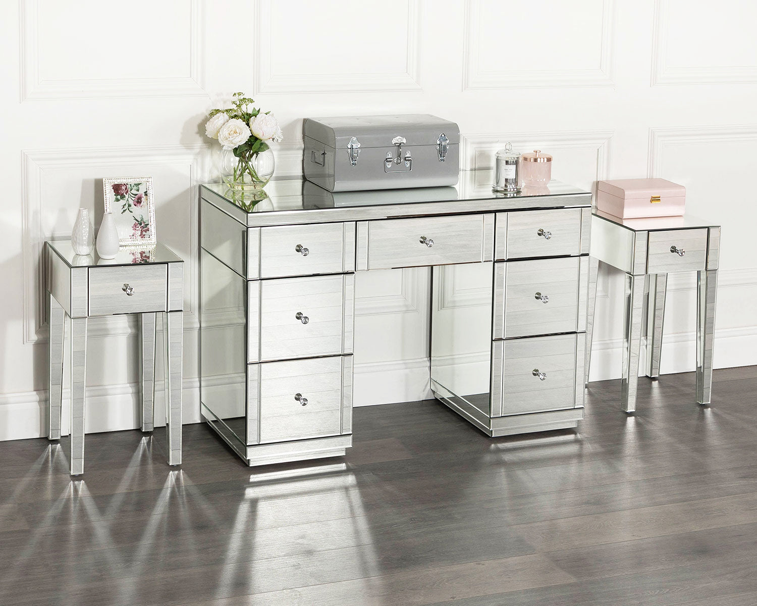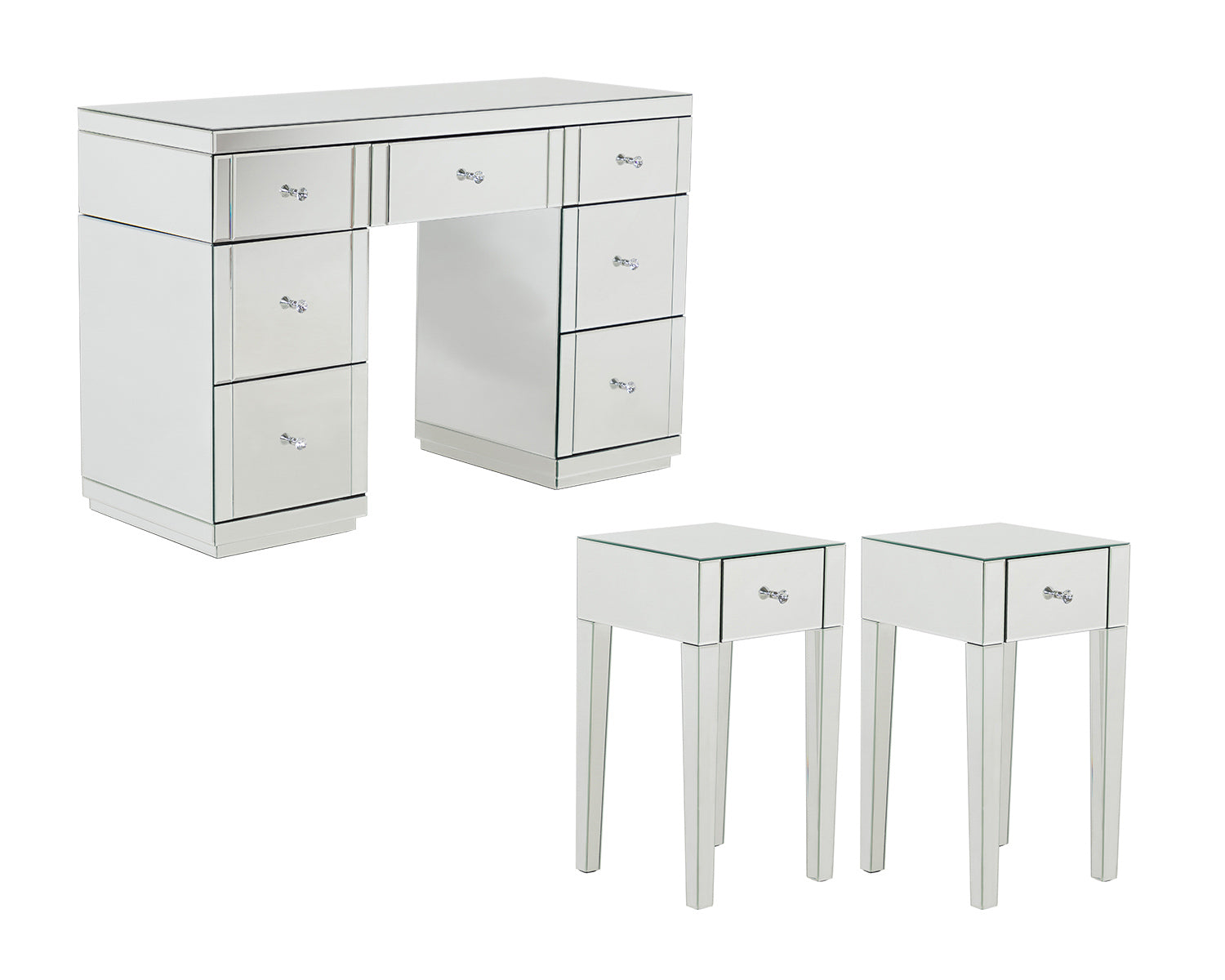 Monroe Silver Mirrored Dressing Table Set with 2 x 1 Drawer Bedside Tables