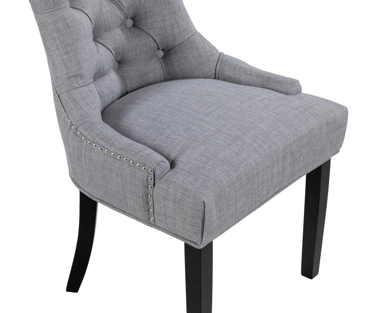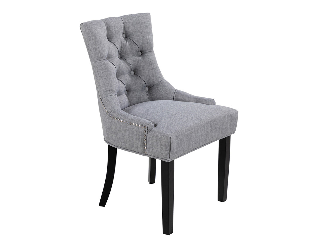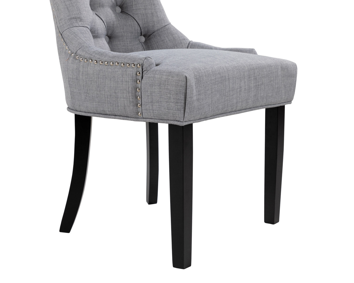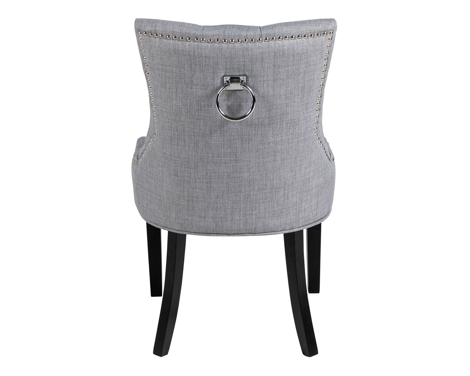 Verona Dining Chair in Grey Linen with Chrome Knocker and Black Legs