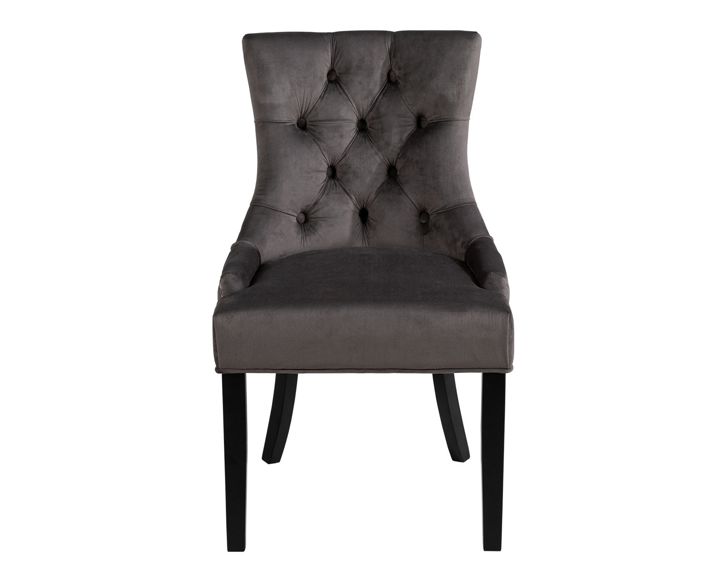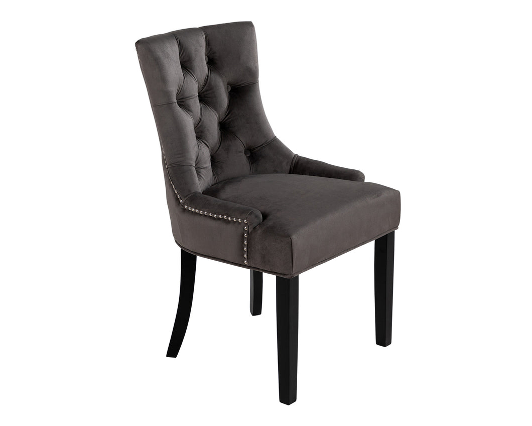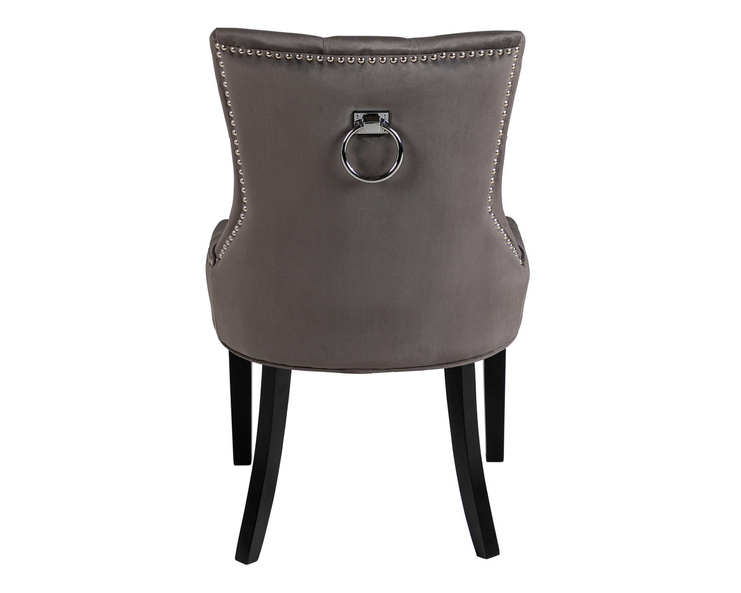 Verona Dining Chair in Grey Velvet with Chrome Knocker and Black Legs
