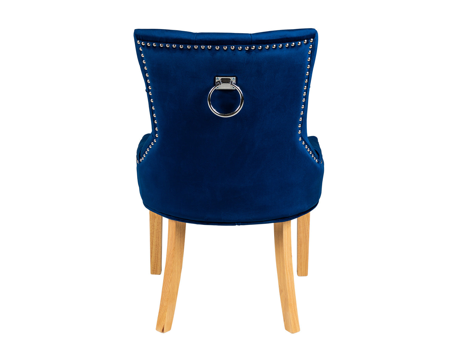 Verona Dining Chair in Royal Blue Velvet with Chrome Knocker and Oak Legs